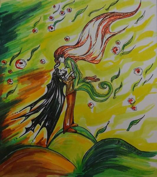 Сначала была картинка. Девушка с длинными рыже-белыми волосами прыгала в объятия бородатого мужчины в плаще. Симпатично, эмоционально, волосам героини лично я, пока рисовала, обзавидовалась. И необычные, и длинные, и ещё и послушные - как в дорамах, где волосок к волоску при любой боёвке.