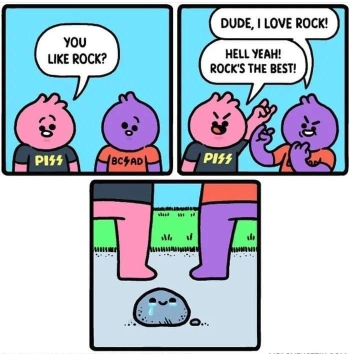 - Ты любишь рок? - Конечно! - Рок это круто, рок лучше всех! Rock = камень