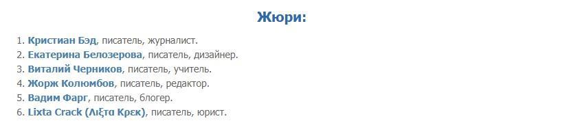 Честно говоря, посмотрев список жюри, Деточка не собиралась даже туда соваться, но, исследовательский интерес шептал: "Деточка, вот почему ты сразу же вешаешь ярлык "говно" даже не попробовав доказать, что так оно и есть?"