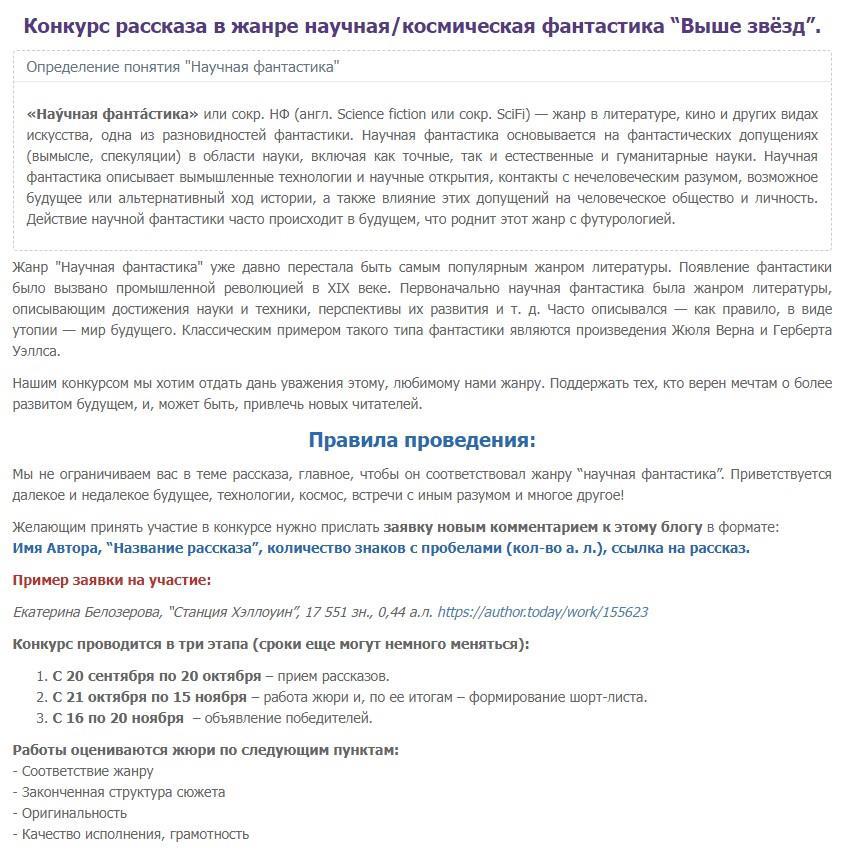 Собственно говоря, конкурс "Выше звезд" появился на фоне скандала в кафе дядиньки Паффина https://author.today/post/419016