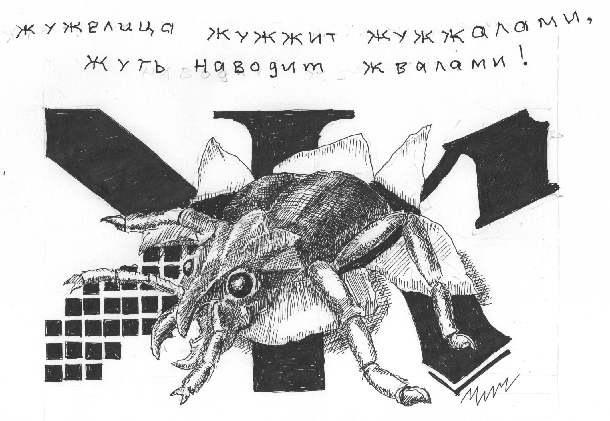 Автор: Вадим ЧичеринДавно хотел нарисовать букву "Ж", а ИнкТобер закончился.