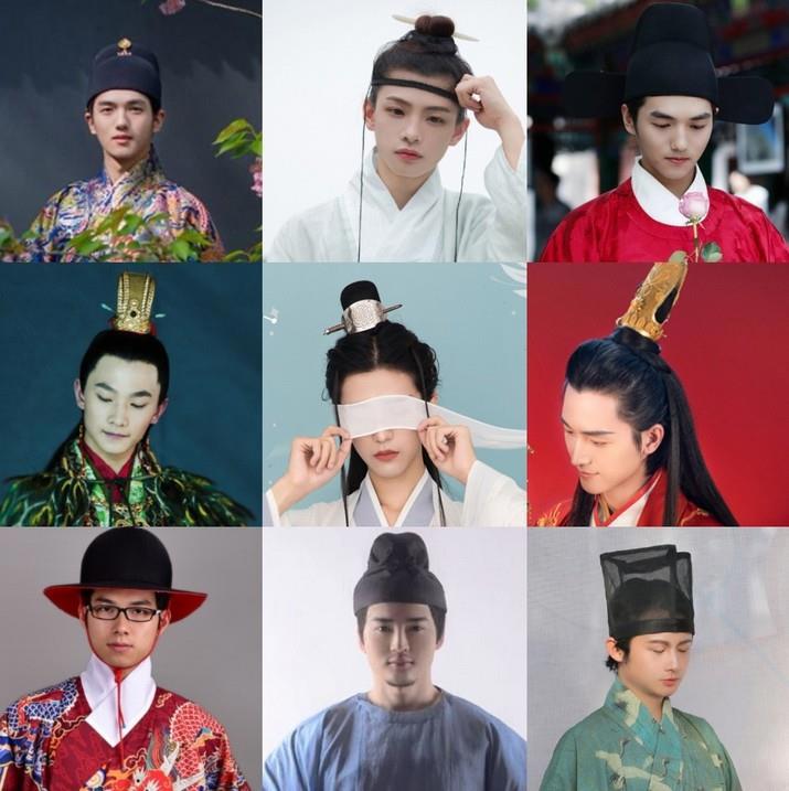 Мужчины носят гуань 冠 guān (корону), бянь 弁 biàn или футоу 幞头 fú tóu. Выглядит это так: