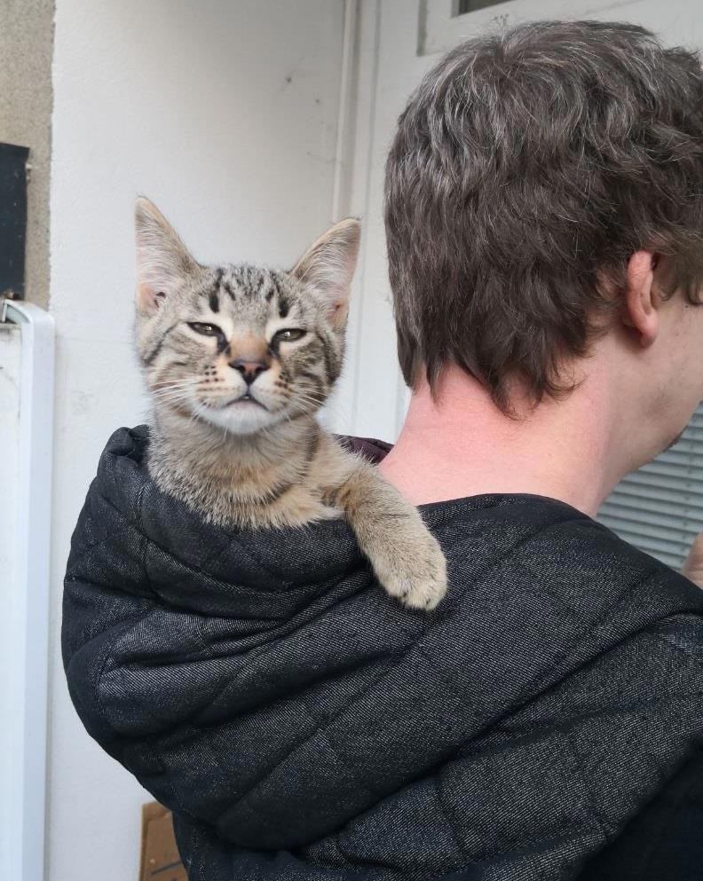 У котов лапки, так что они в основном ездят в капюшонах напарников.