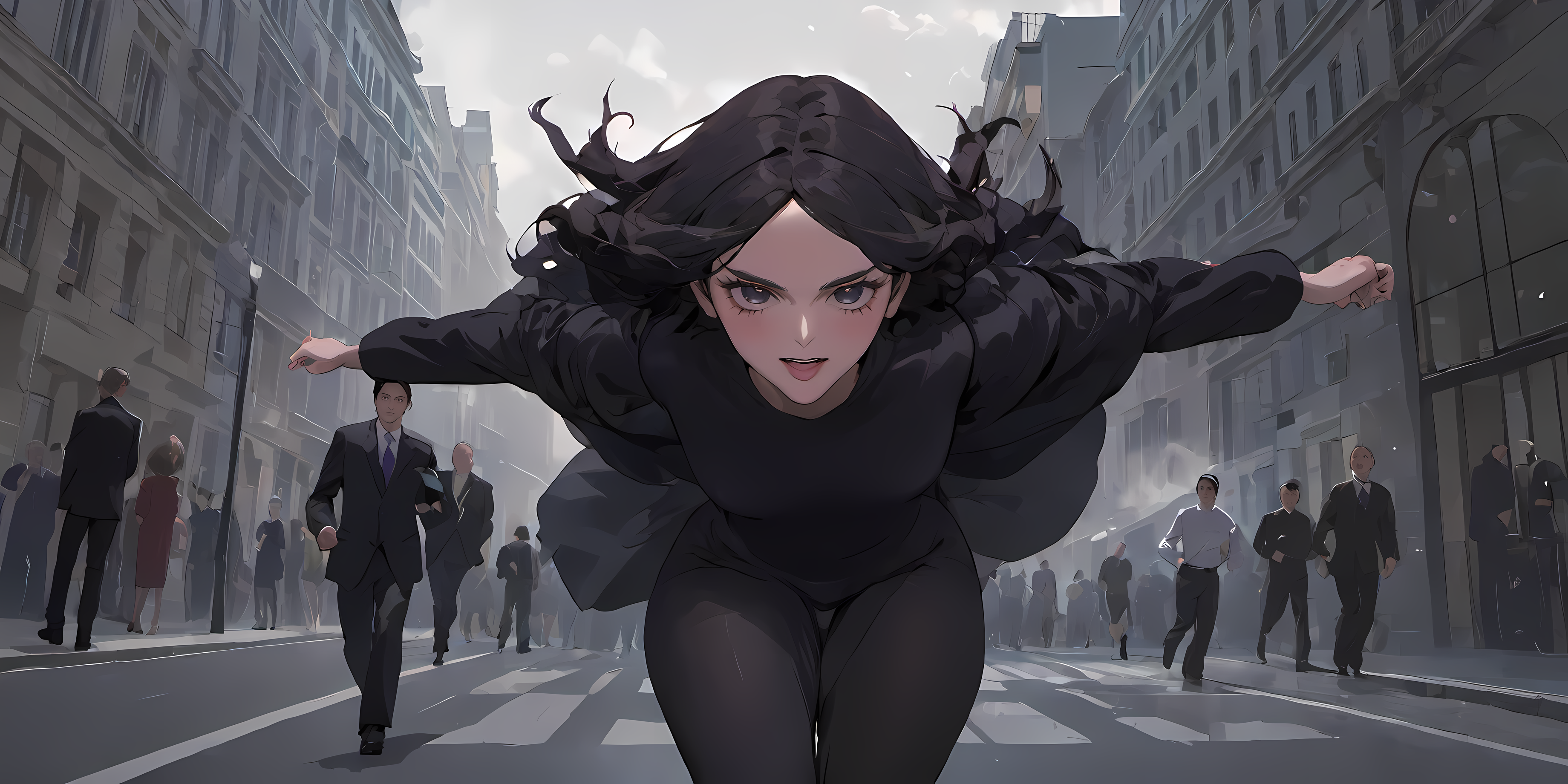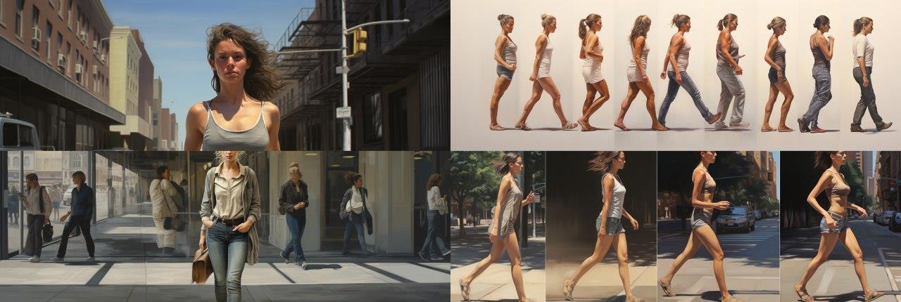 Уже долгое время я пытаюсь создать с помощью какой-нибудь нейросети (а перепробовал я их уже немало) картинку следующего вида: человек в профиль, идущий широким шагом. Спина и находящаяся сзади нога — мужские, в то время как спереди это уже должна быть женщина (или наоборот, сзади — женщина, а спереди — мужчина, это не принципиально). На заднем плане при этом слева — городской пейзаж, в то время как справа — цветасто-фентезийный. Соотношение ширины картинки к высоте должно быть при этом 3:1 (ну или хотя бы 2:1, чтобы можно было обрезать без сильного ущерба для картинки).