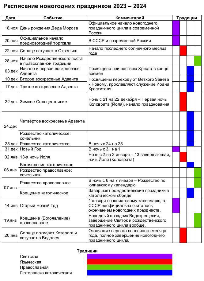 Ну и заодно - ловите расписание праздников на текущее новогодье. Чтобы точно знать: когда и по какому поводу принимать. Если, конечно, повод нужен...