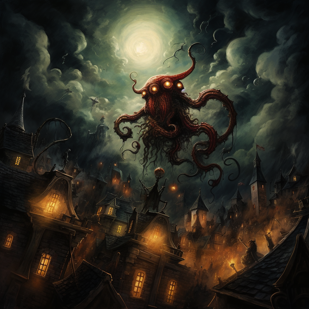 Ну, что я могу сказать по исходу недели... Меня часто упрекают в создании мрачных и безумных вещей - так вот, благодаря нейросети производство мрачно-безумных вещей удалось не только увеличить в три-четыре раза от плана, но и поставить на поток. В короткое время она наплодила мне таких восхитительных картинков, что иногда хотелось хохотать от умиления... надежно спрятавшись в несгораемом шкафу.