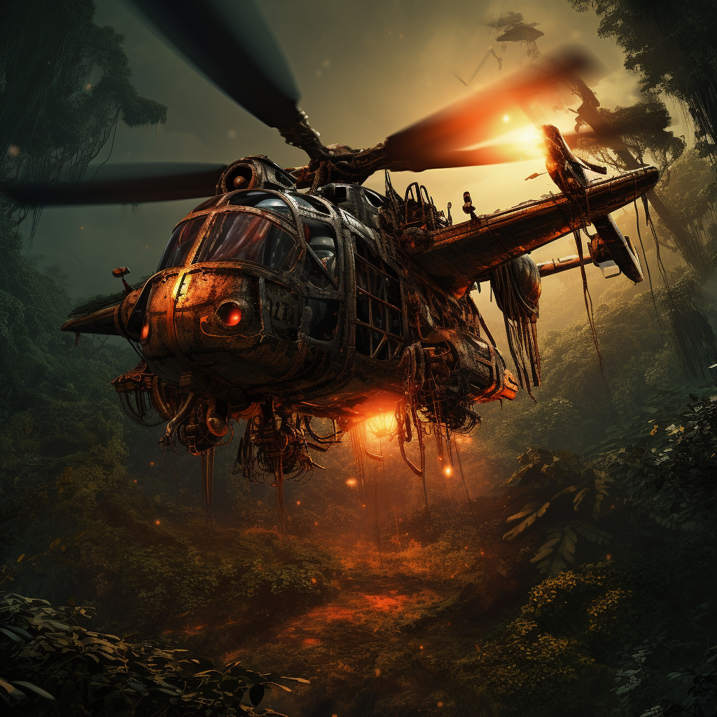 Очень непросто вышло с джунглями. Если вы читали "Барби", наверно, помните небольшой экскурс в будни Сиамской войны 1965-1973 годов. Кажется, мне удалось сделать этот отрывок весьма... Своеобразным. Отчаянный саксонский натиск, вязнущий в джунглях, вертолеты вендельфлюгели, полосующие мушкетным огнем темные плотоядные джунгли, гуки на деревьях...