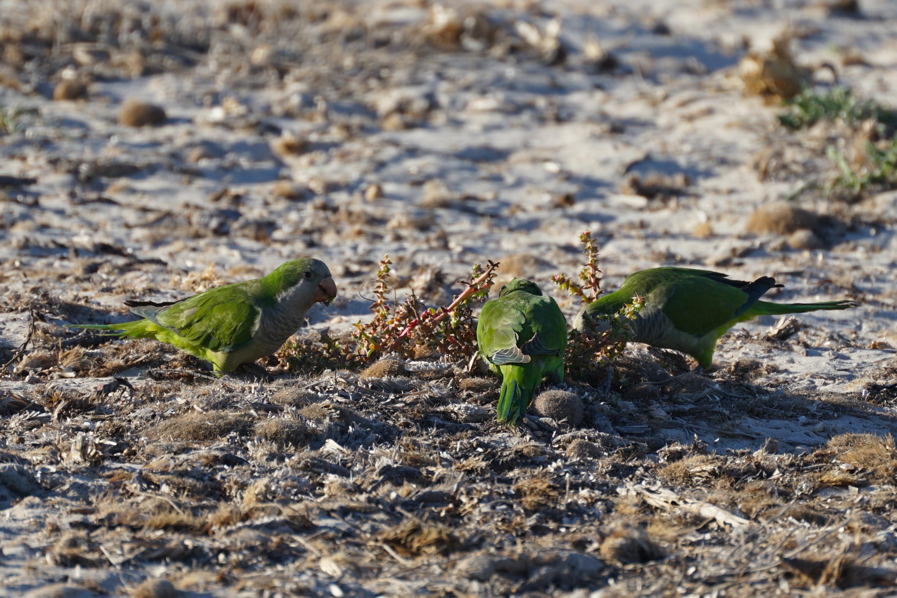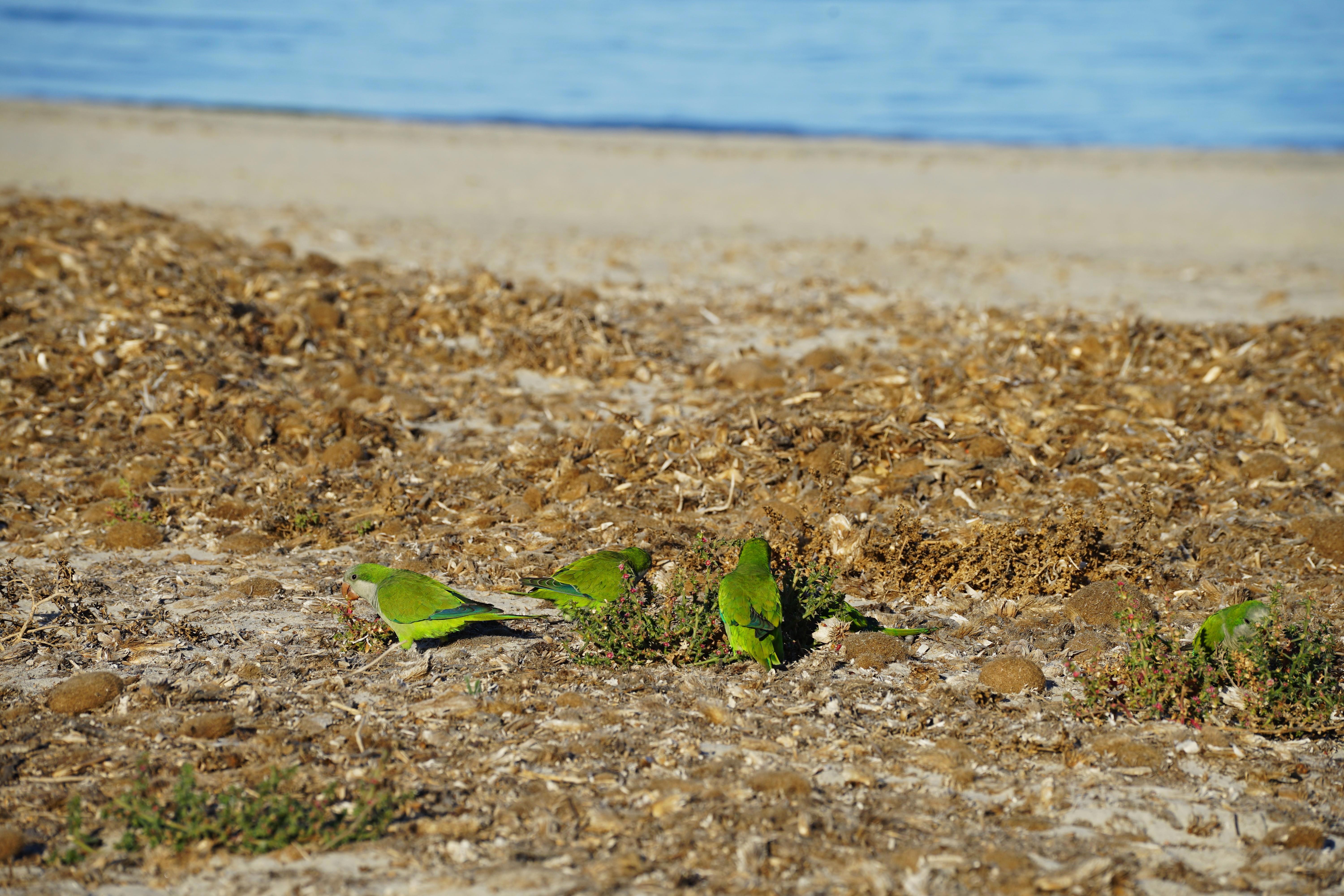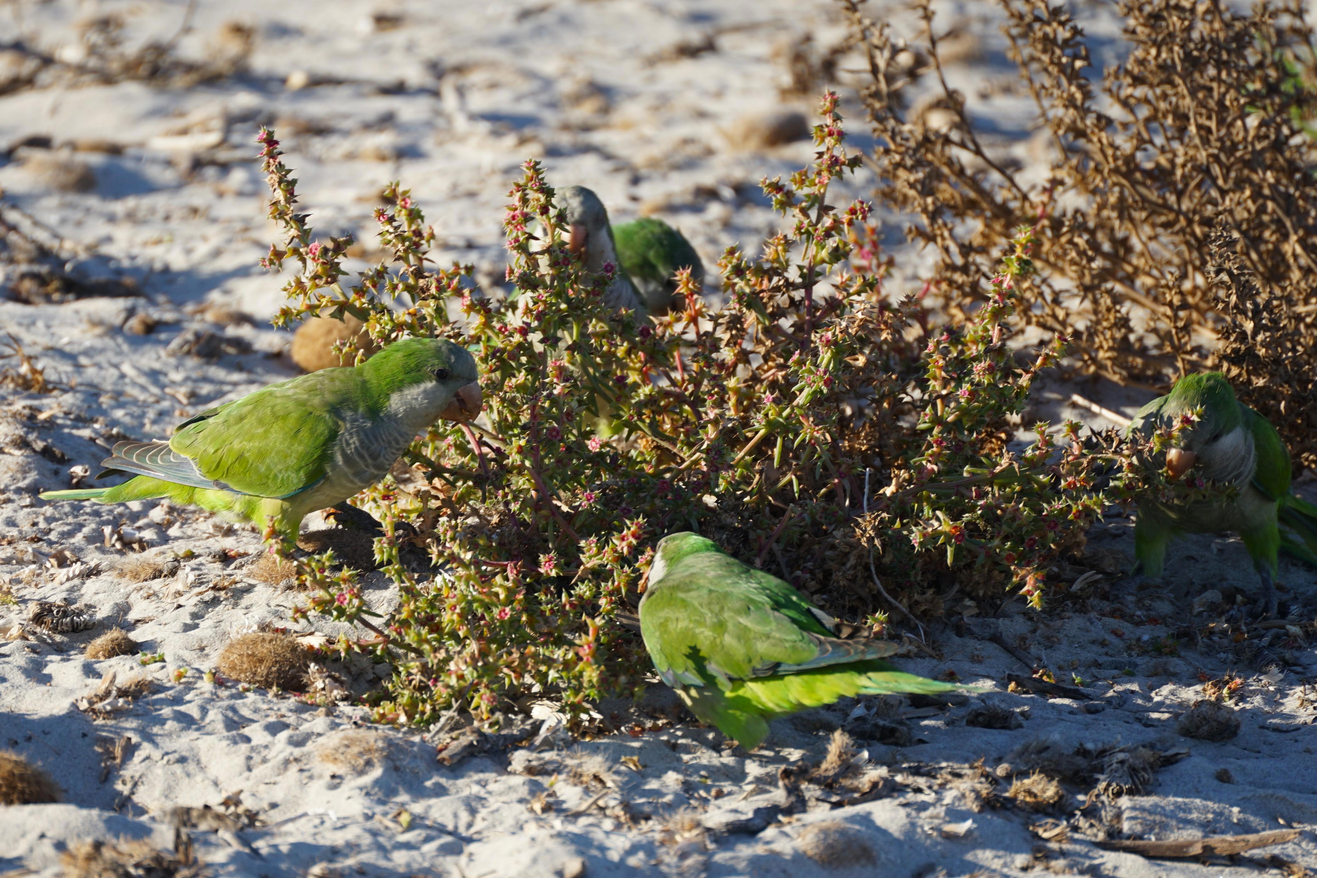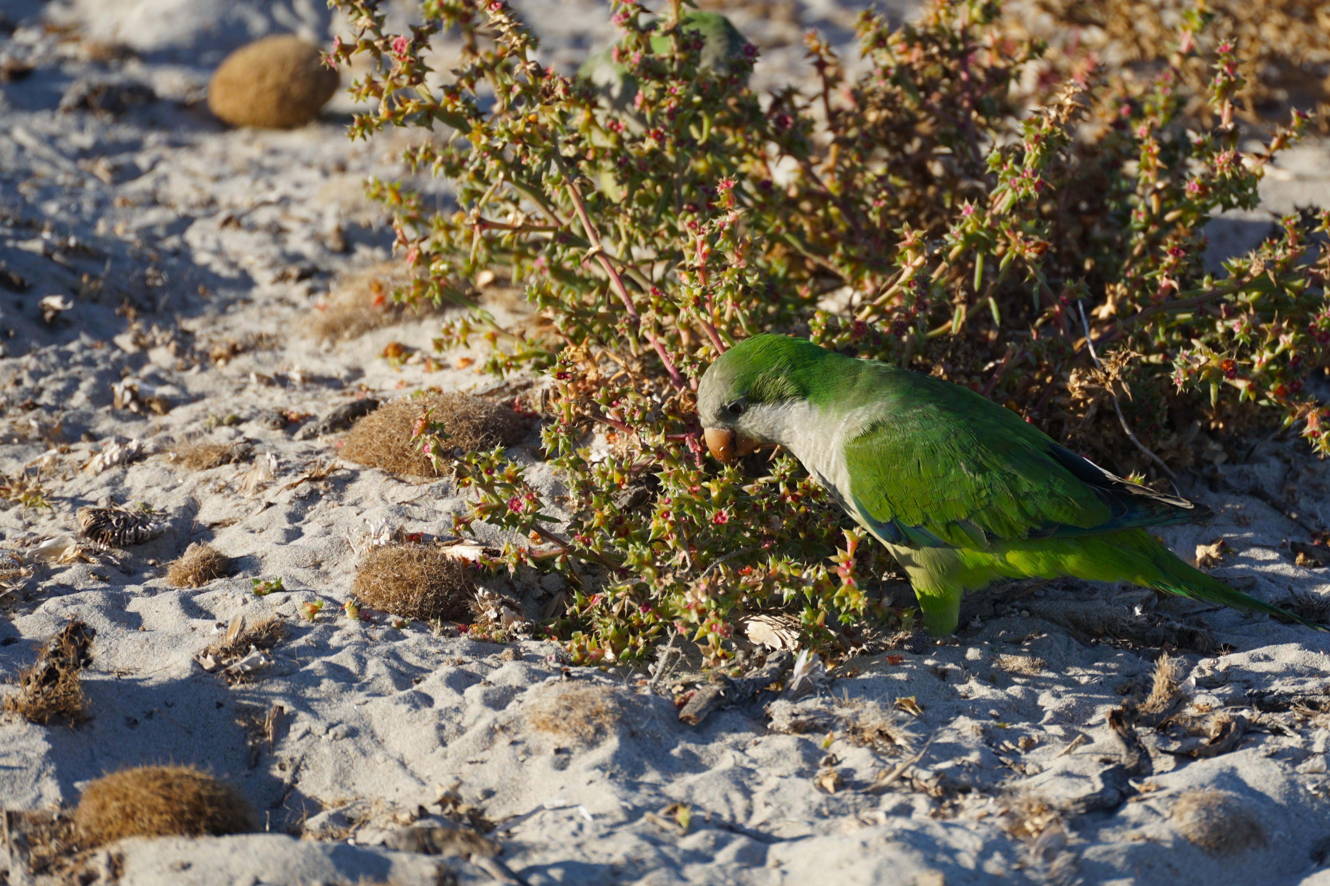 И вот шла-пошла я по пляжу, искупалась, и тут на пляж прилетела стая попугаев. Диких, конечно. Их тут полно, во всех пальмах трещат, но чтобы увидеть - все-таки редкость. А эти уселись в кустики и стали их шелушить на предмет семян. Я бросила сандалии и стала к ним подкрадываться. Все ближе и ближе. Им было пофиг - они там семечки увлеченно лузгали. А я в азарте забралась посередь каких-то колючек босиком. Потом с трудом выбралась. К тому же от возбуждения забыла про свои сандалии и так и утопала оттуда босиком, ну, возвращалась, конечно к одиноким сандалиям посреди пляжа.