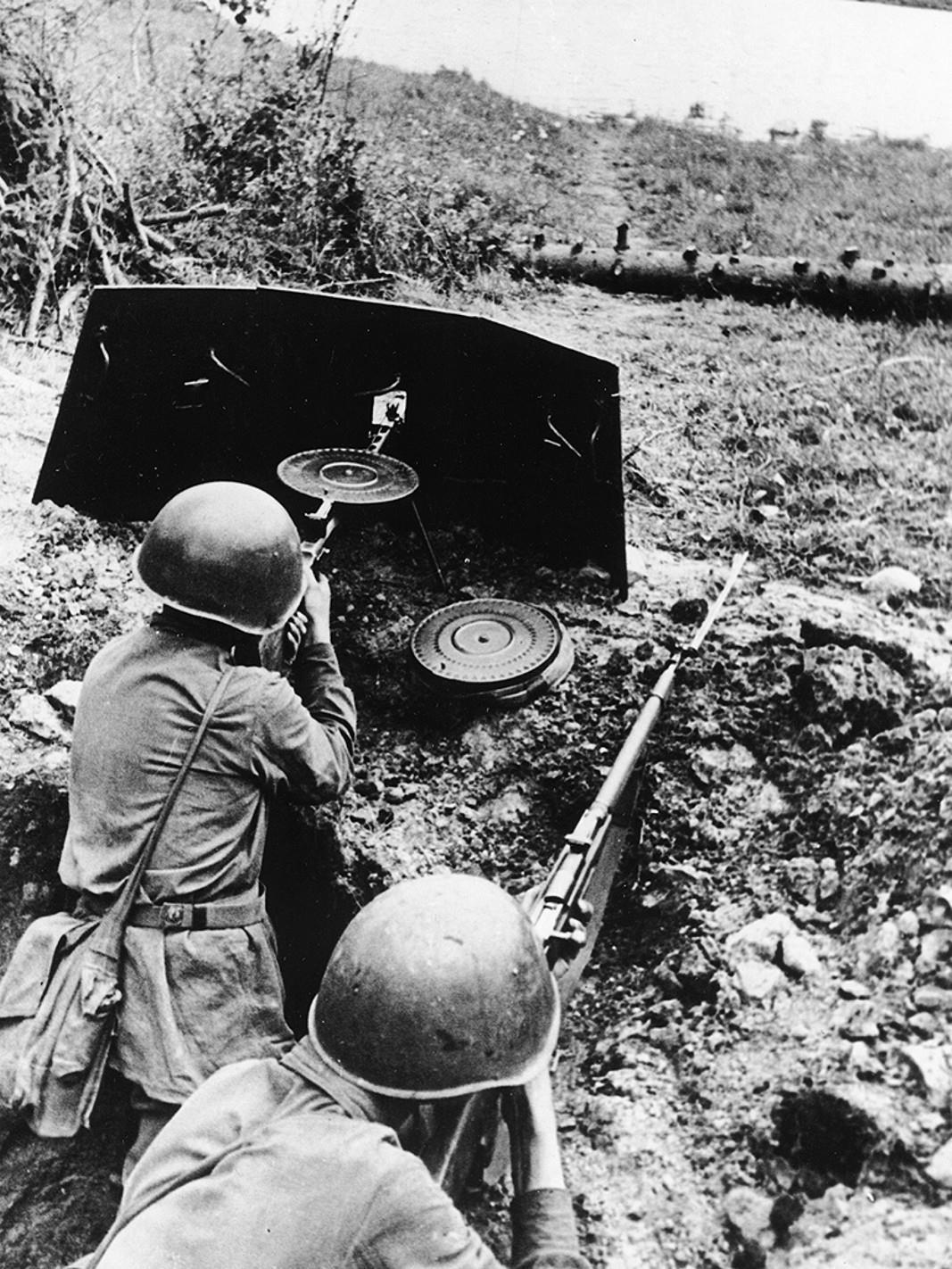 Красная Армия начала войну с двумя типами пулеметов. Нишу ручного пулемета прочно занял «Дегтярев Пехотный» – ДП, с дисковым магазином на 47 патронов. В роли станкового выступал хорошо знакомый еще с Первой Мировой «максим» на колесном станке Соколова – созданный незадолго до начала войны ДС-39 показал себя не лучшим образом и перед началом ВОВ был снят с производства. Только с 1943 года на замену «максиму» начал поступать новый СГ-43 конструкции Горюнова, но до конца войны заменить «максимку» так и не удалось.