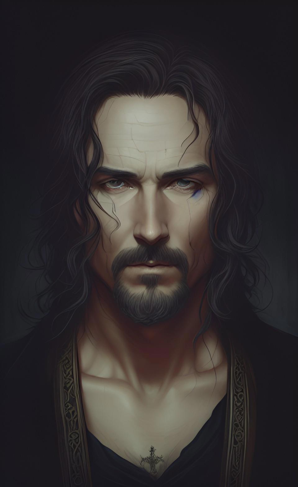 Сын жрицы темного божества, который должен был быть жертвой, но выжил. У него сложная история взаимоотношений с миром, которая приоткрывается в рассказе.