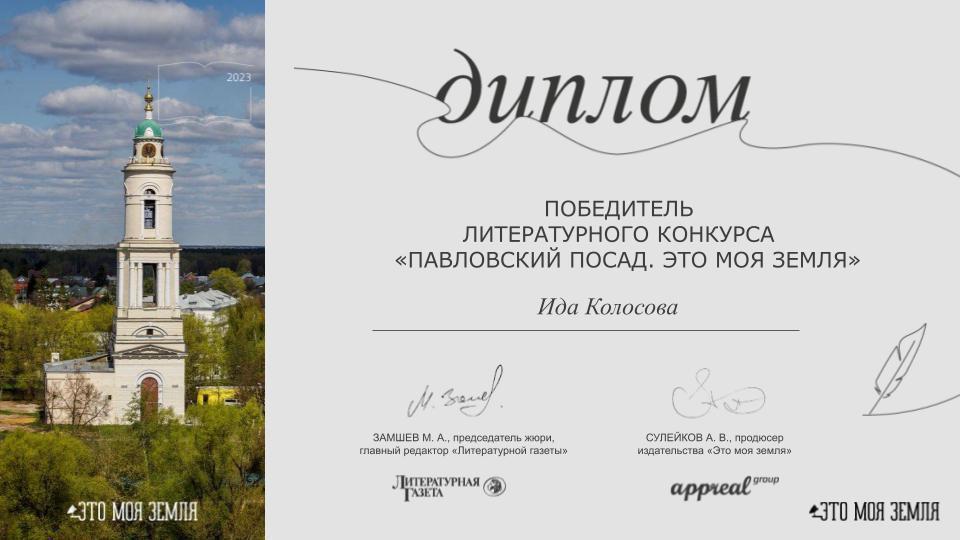 Мой коротенький рассказ-сказка "Сундук" вошел в число победителей конкурса "Павловский Посад. Это моя земля".