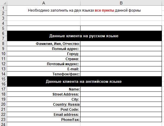 Для размещения заказа нам нужны данные конечного пользователя на русском и английском языках.