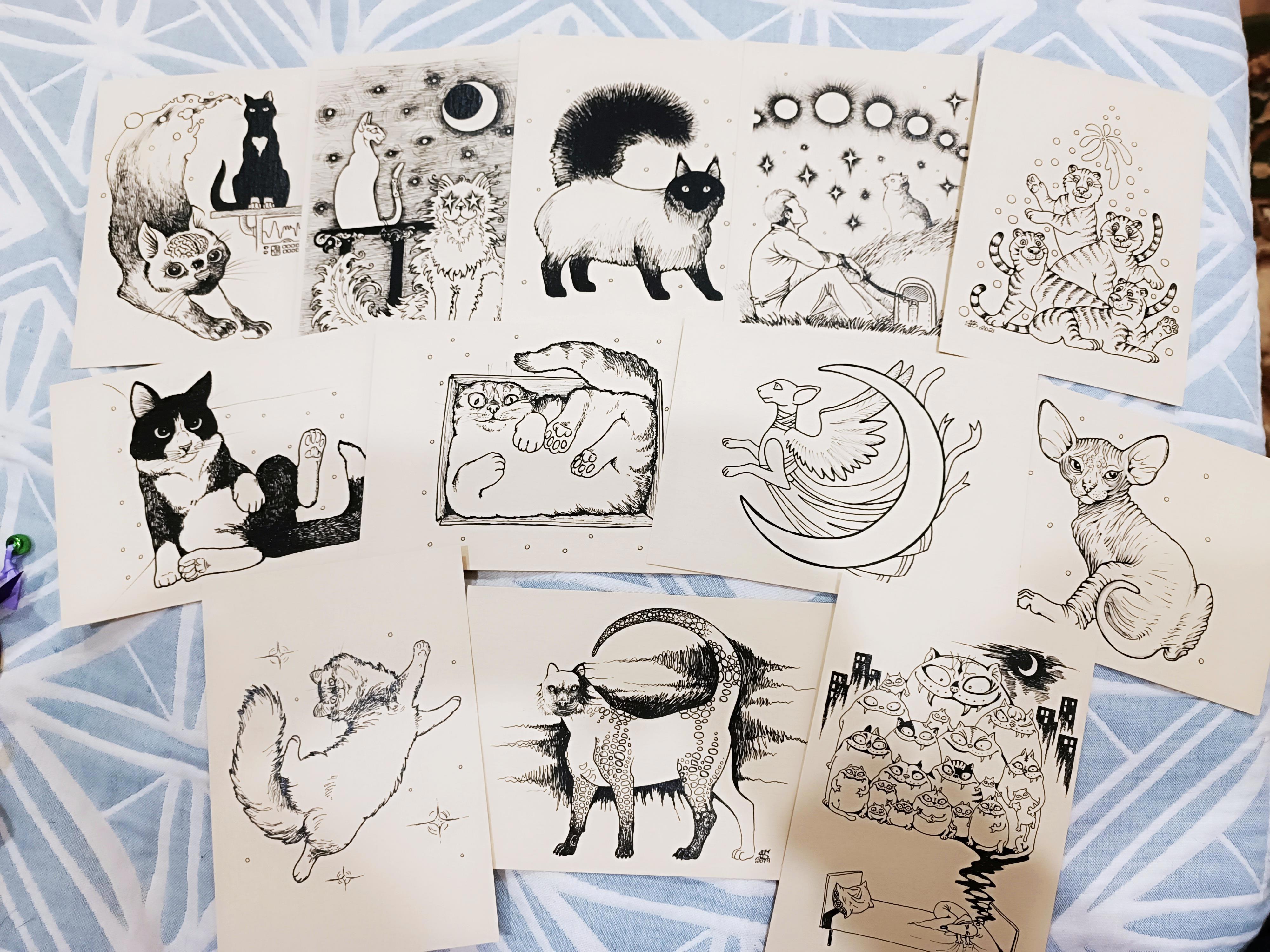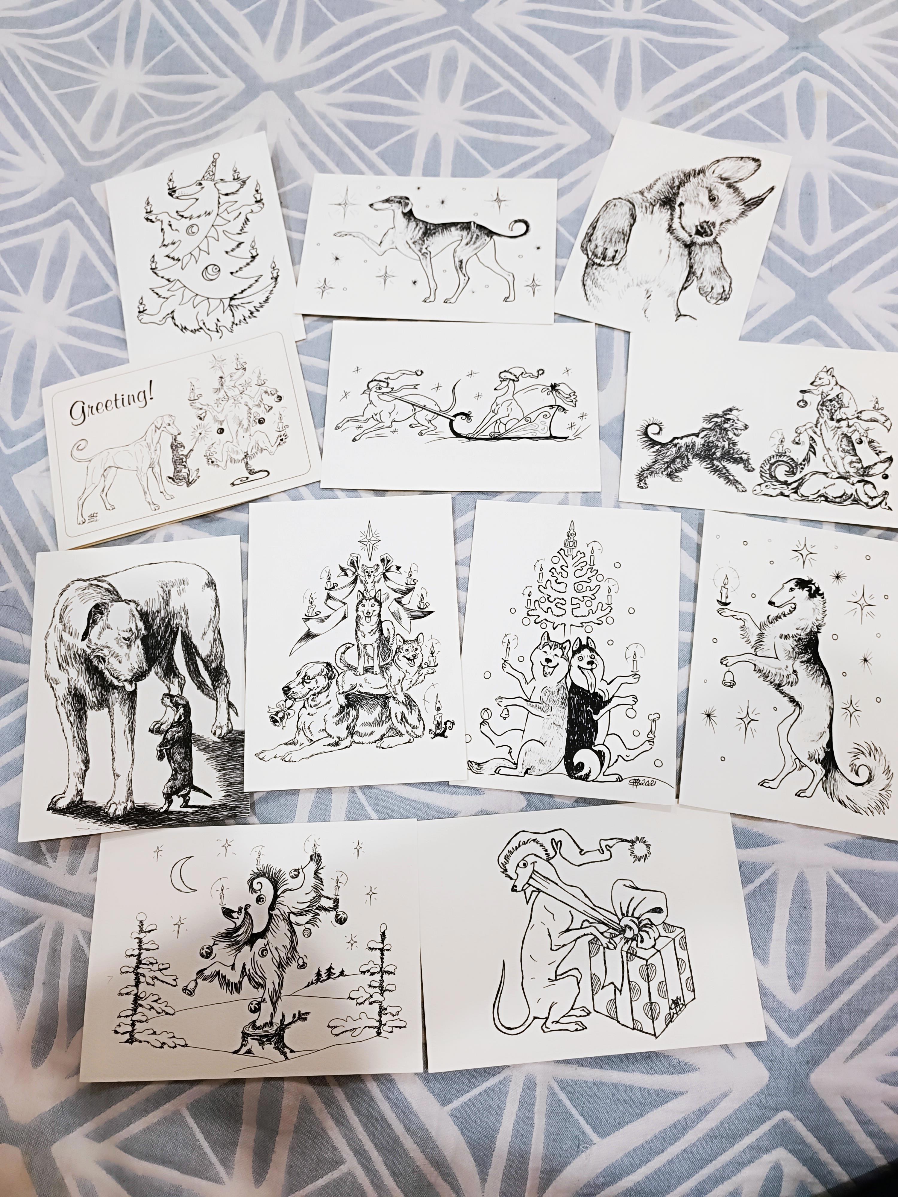 А ещё два потрясающих набора открыток с котиками и новогодними собачками!))