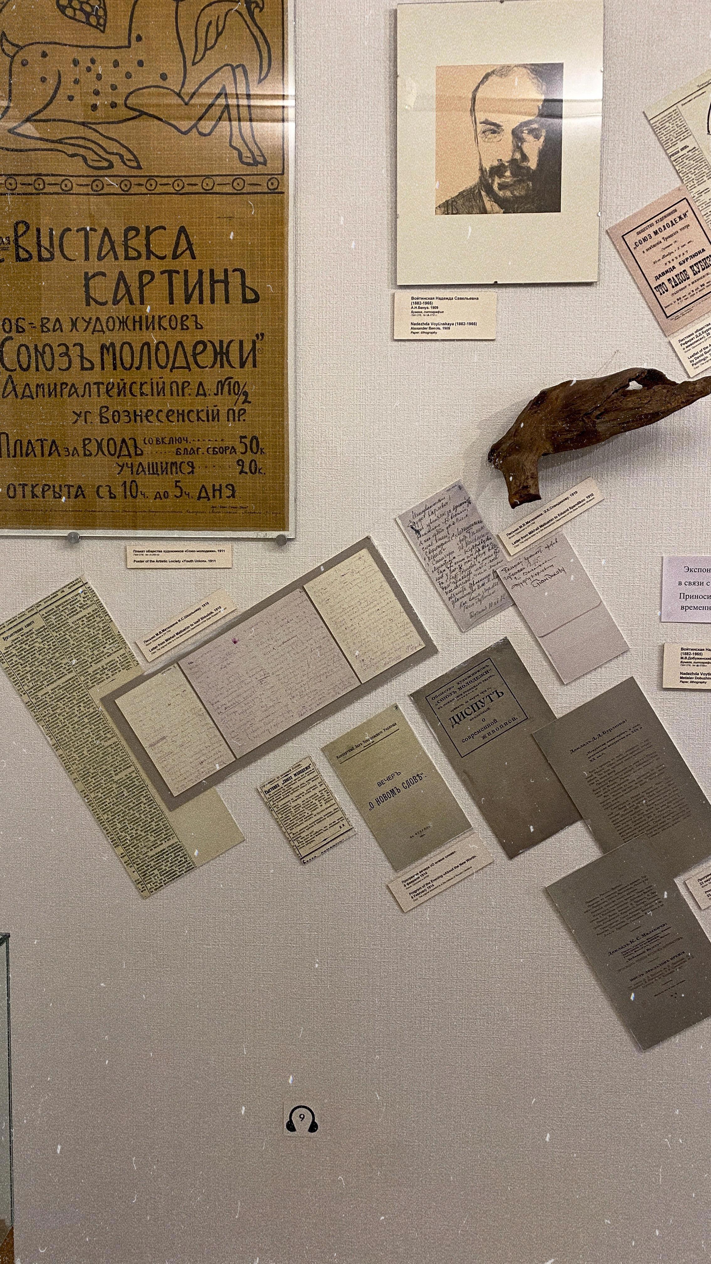 Решил сходить. Внутри — затхлость и пара смотрителей, которые будто бы уже сами стали экспонатами этого музея. Несколько картин Гуро и Матюшина, даже не оригиналы — копии писем поэтессы.