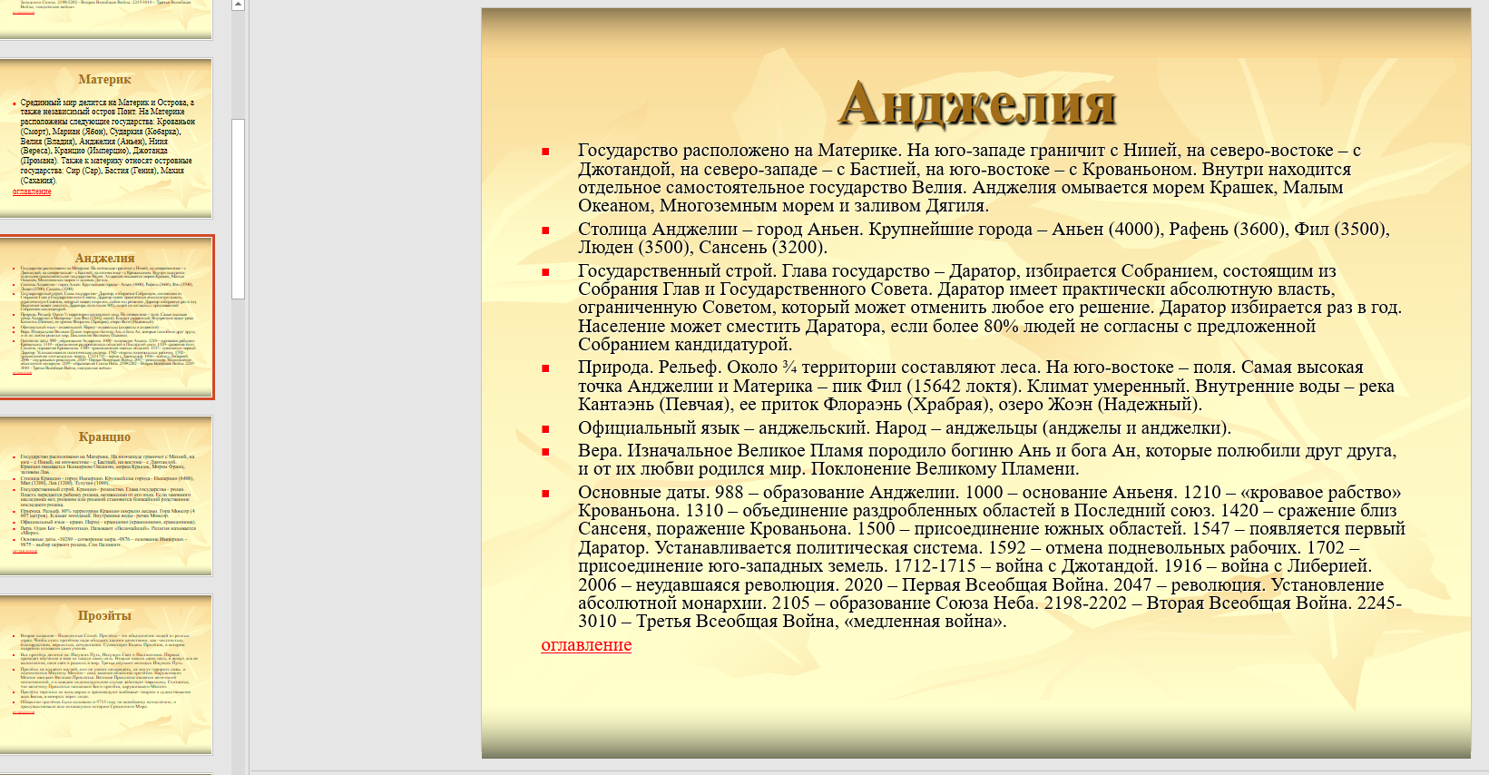 Пару лет назад я завела на своем сайте страничку с энциклопедией. Пока что она весьма поверхностна, но я надеюсь со временем ее расширить. Обычно она пополняется под запросы читателей. Например, я составила словарик анжельского языка, потому что многим после романа "В поисках солнца" стала интересна эта тема. А еще планируется отдельная страничка с распространенными погодными метафорами)))