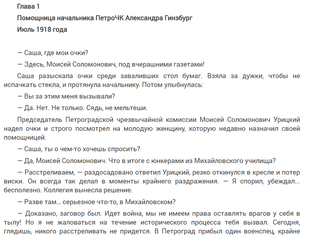 Итак, зажав в правой потной ручонке компьютерную мышку, я клацнул по профилю Яночки и решил приобщиться к творчеству. Думаю, если у неё одна рецензия такой эффект вызывает, то вкладке "произведения" вообще одни брульянты. Выбрал первый том серии "Комиссар", открыл, результат - моё почтение.