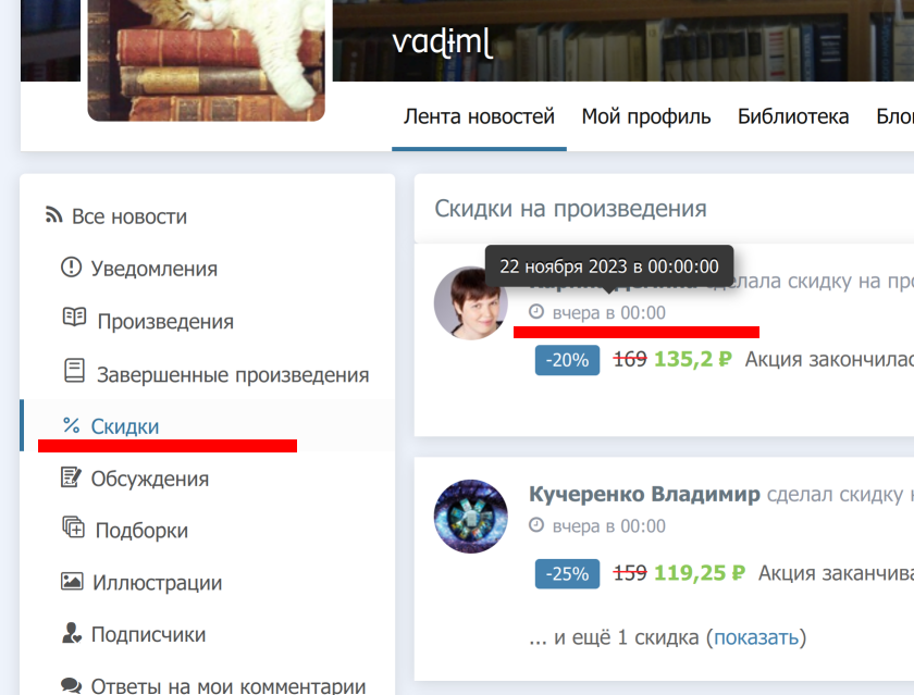 Автор: ⱱɑɖɨmɭМногие пишут, что начиная с сегодняшнего дня наделали скидок, у кое-кого я их (эти скидки) даже увидел, зайдя на их (авторов) страницы. А вот в ленте новостей в полночь ничего не появилось: