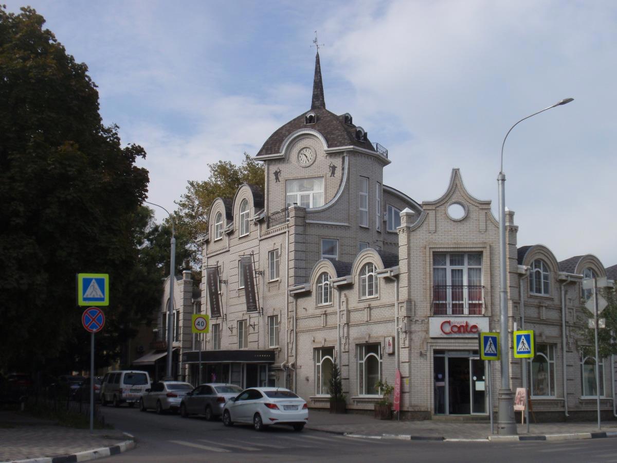 В Таганроге прошли детство и юность Антона Чехова. Поэтому в полном ассортименте объекты, связанные с писателем – от панно и памятников до ресторанов и музеев. Домик Чехова меня мало впечатлил, а вот музей "Лавка Чеховых" в двухэтажном здании (снова угловом, да), очень мил. На первом этаже в нём находится пресловутая лавка колониальных товаров, где и сейчас можно купить чай и кофе.