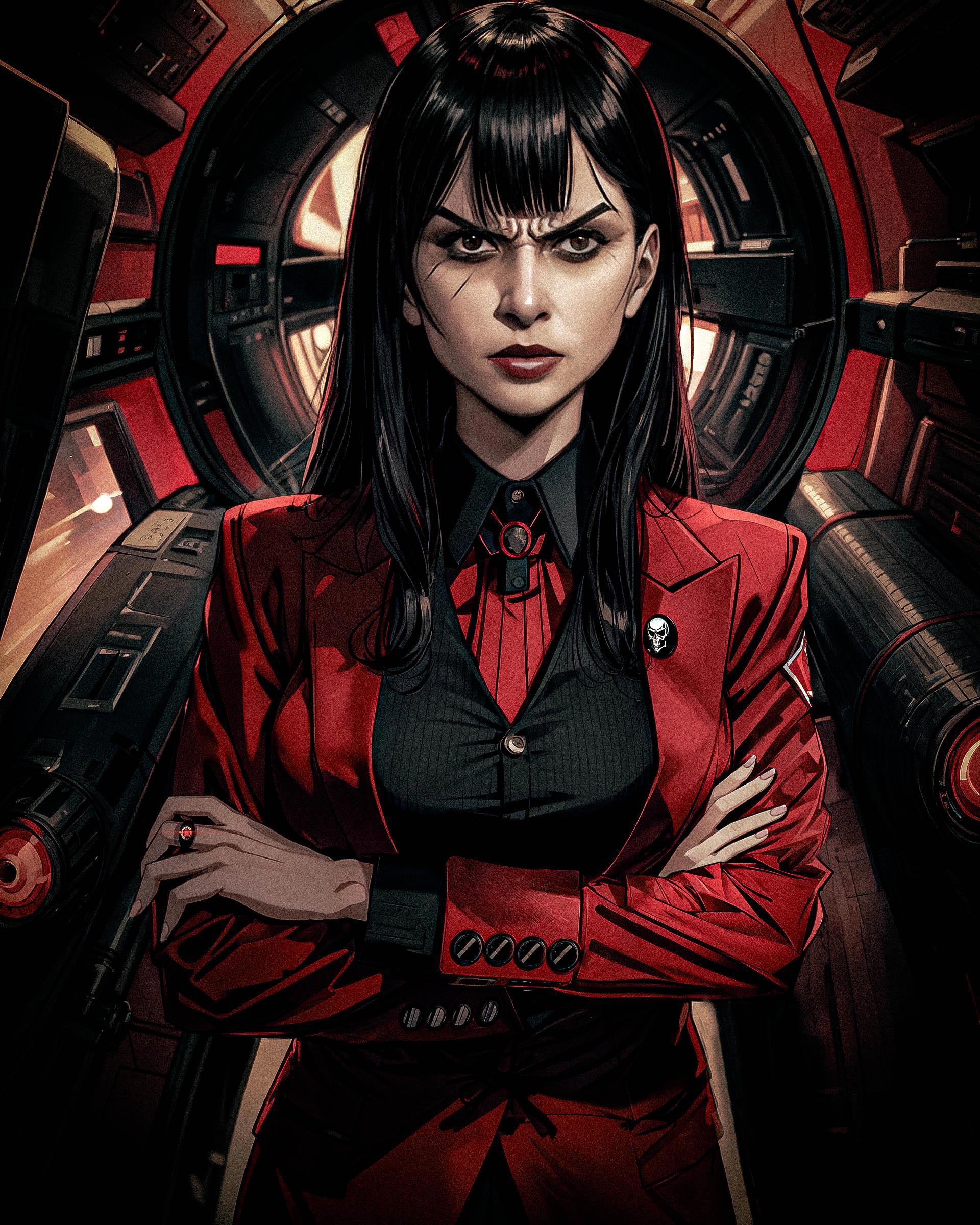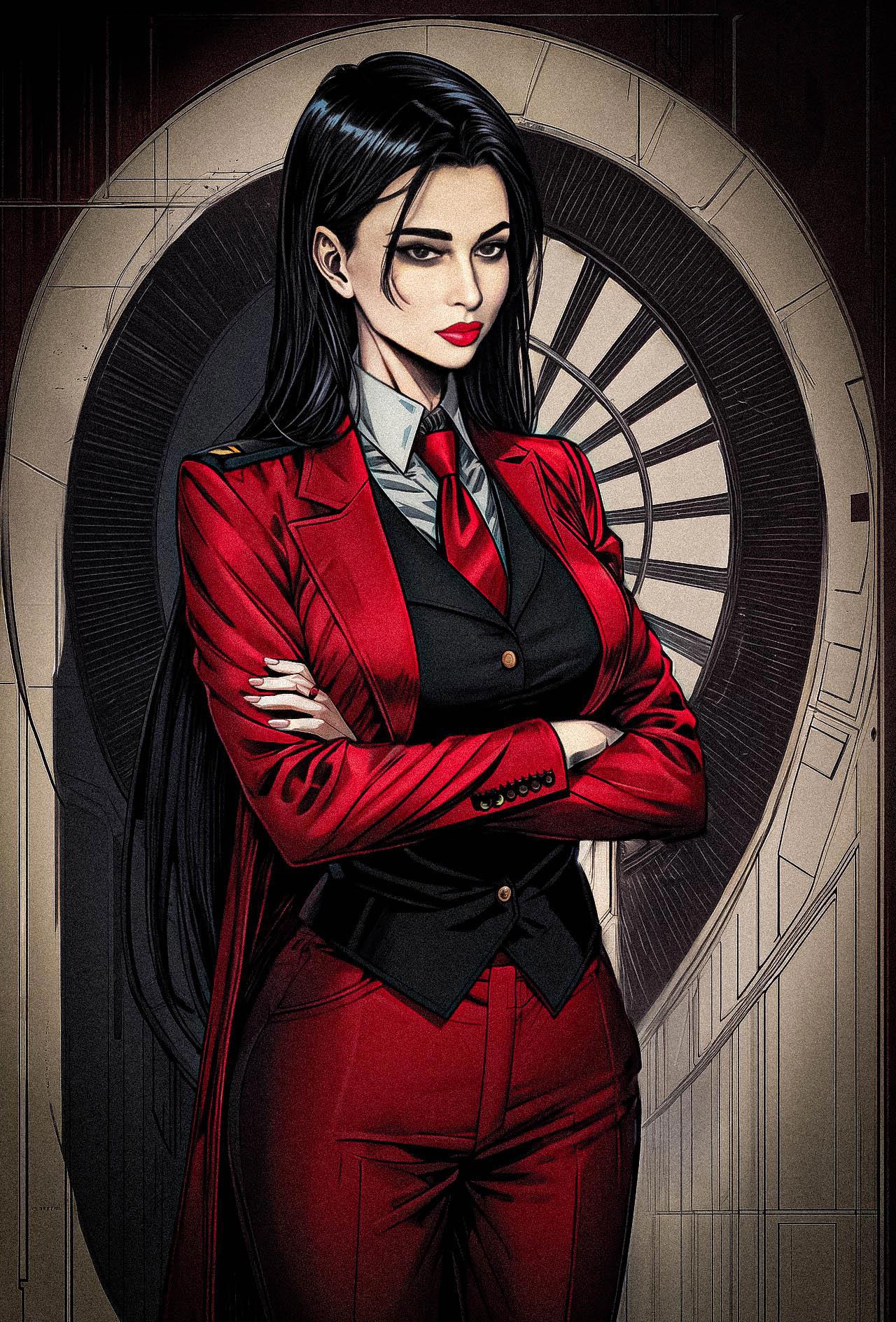 Ух, это было сложно. Дело в том, что по ТЗ требовалось изобразить на лице определённые эмоции, эдакое... испепеление взглядом. Но все фото были довольно милые, девушка на них либо улыбалась, либо имела нейтральное выражение лица. И сделать вот такое испепеление из улыбчивой девушки оказалось очень непросто. Ещё и костюм должен был быть определённого вида - строгий офисный, но в то же время напоминающий военную форму/что-то космическое. В общем, довольно непростой заказ. Но очень интересный, мне понравилось работать в подобном ключе. Результатом очень доволен :)