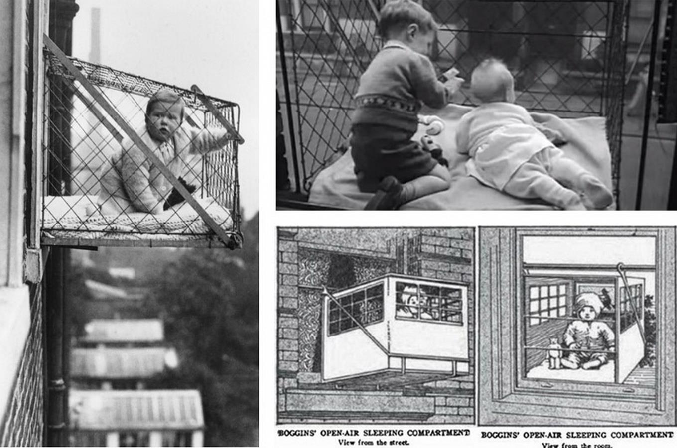 Клетки для детей. 1922 год Зрелище не для слабонервных). За оном! Она предназначалась для того, чтобы обеспечить ребёнка свежим воздухом (над оживленной улицей) и свободным местом в перенаселённом городе и дать мамочке прибраться в доме.