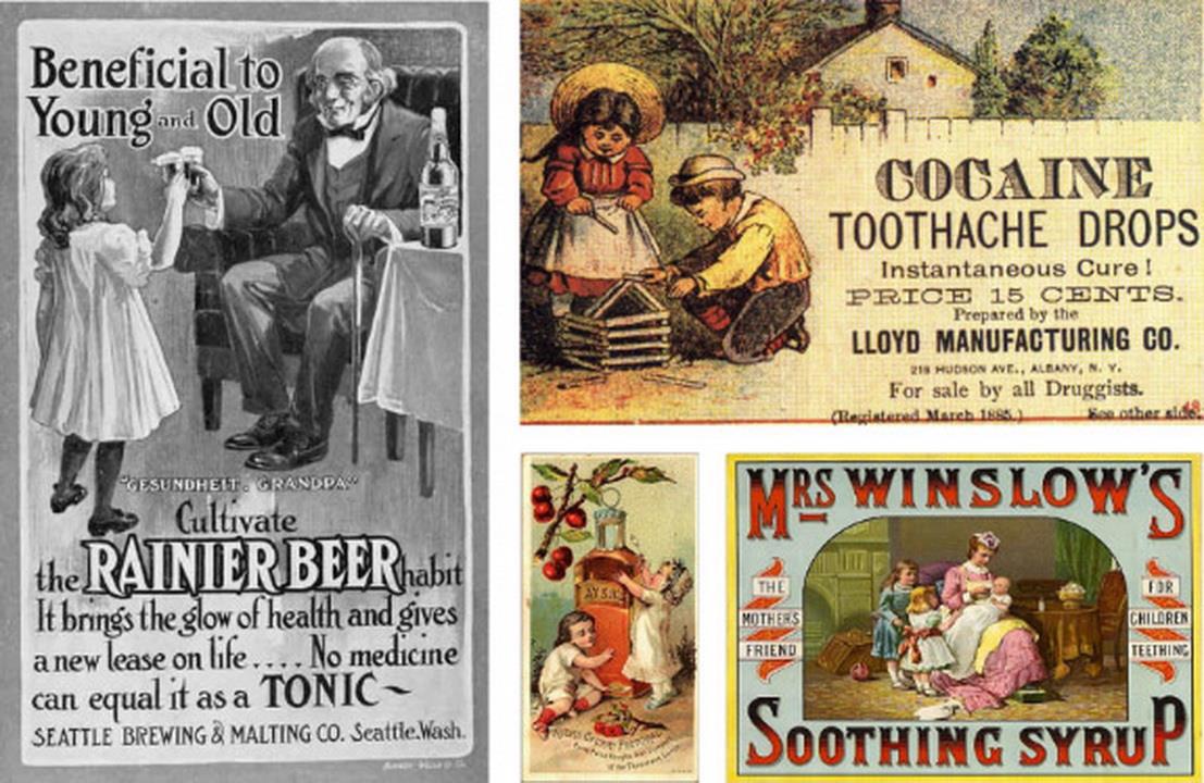 "Лекарства" для детей. XIX век и начало XX века Морфий, кокаин и пиво. Круто! Врачи прошлых лет прекрасно знали, что ничто так не успокоит малыша, как мощный наркотик или выпивка)