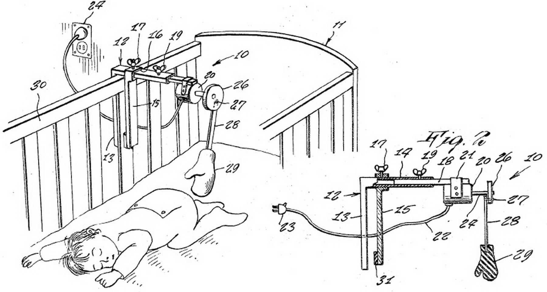 Шлёпающая малыша машина. 1968 год Вот ещё одно устройство, причём с моторчиком! Колотить всю ночь? Это выше моего понимания.