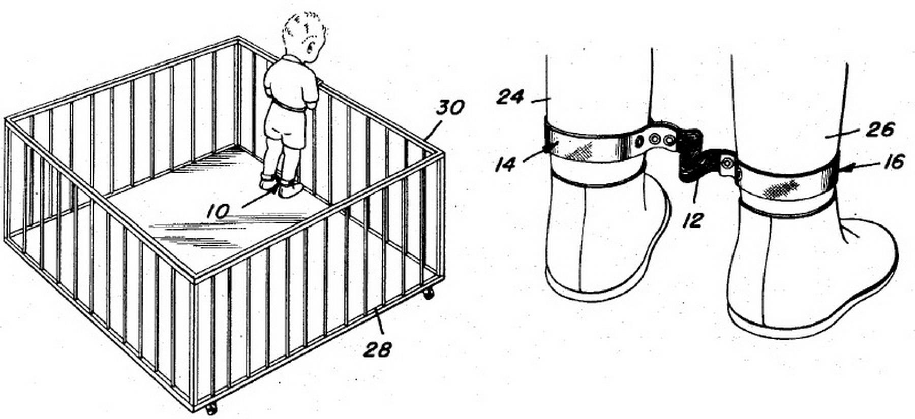 Ограничительная система для вашего малыша. 1978 год Ну, поменяли вы подгузник, а что дальше? Кандалы на ногах – самое то!