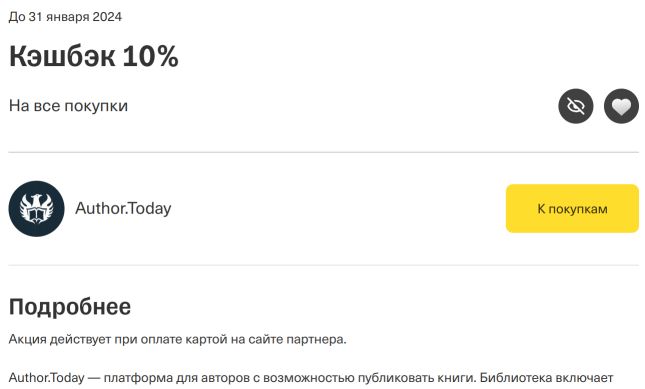 Автор: ⱱɑɖɨmɭКак я понимаю, АТ заключил рекламный договор с Тиньковым, и поэтому у последнего появилась 10% скидка на оплату книг на АТ, вот: