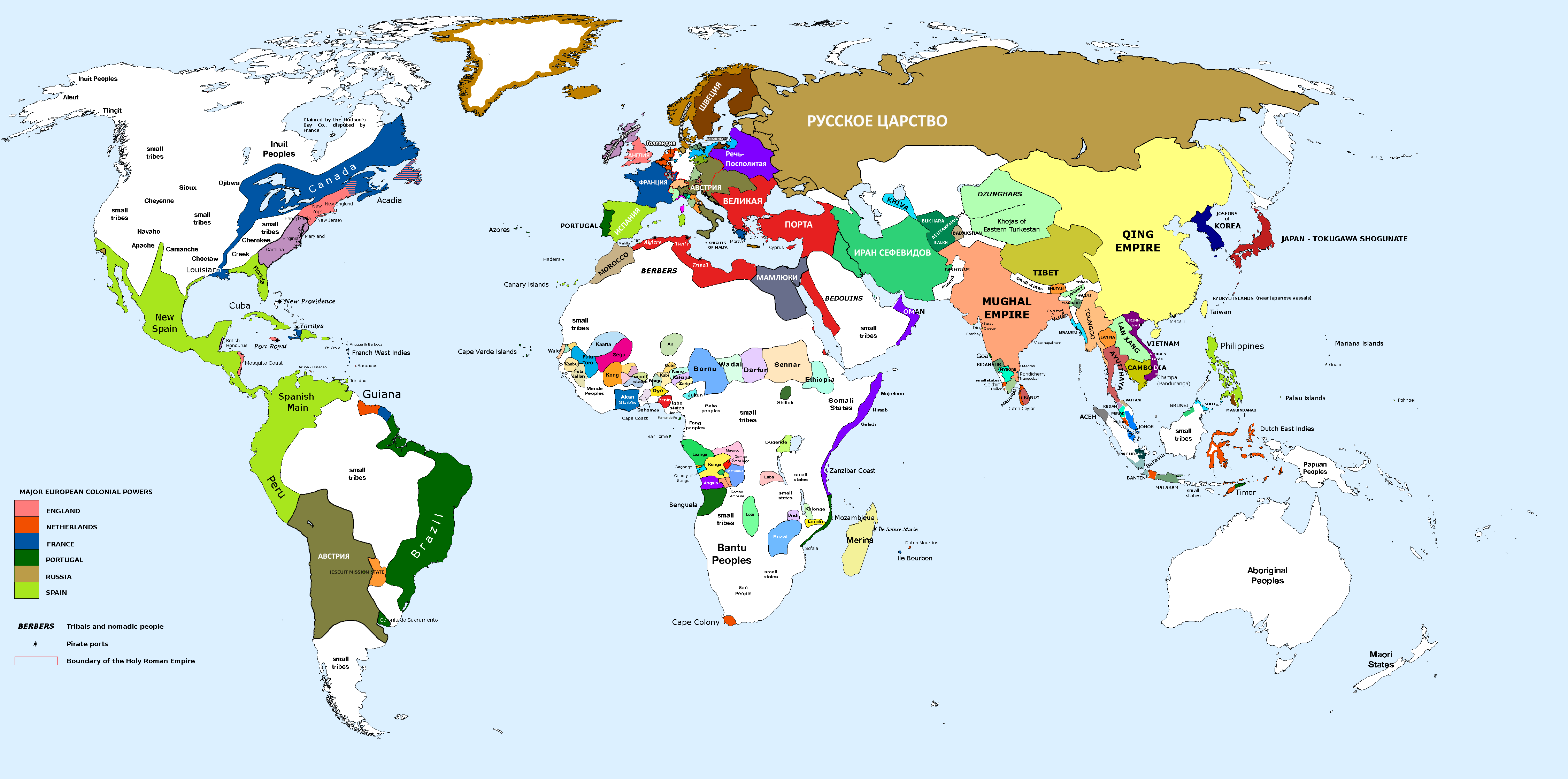 Сделал черновую версию карты мира по итогам 1707 года в романе Сын Петра. В принципе нужно поправить легенду и привести в порядок названия. Кликабельная.