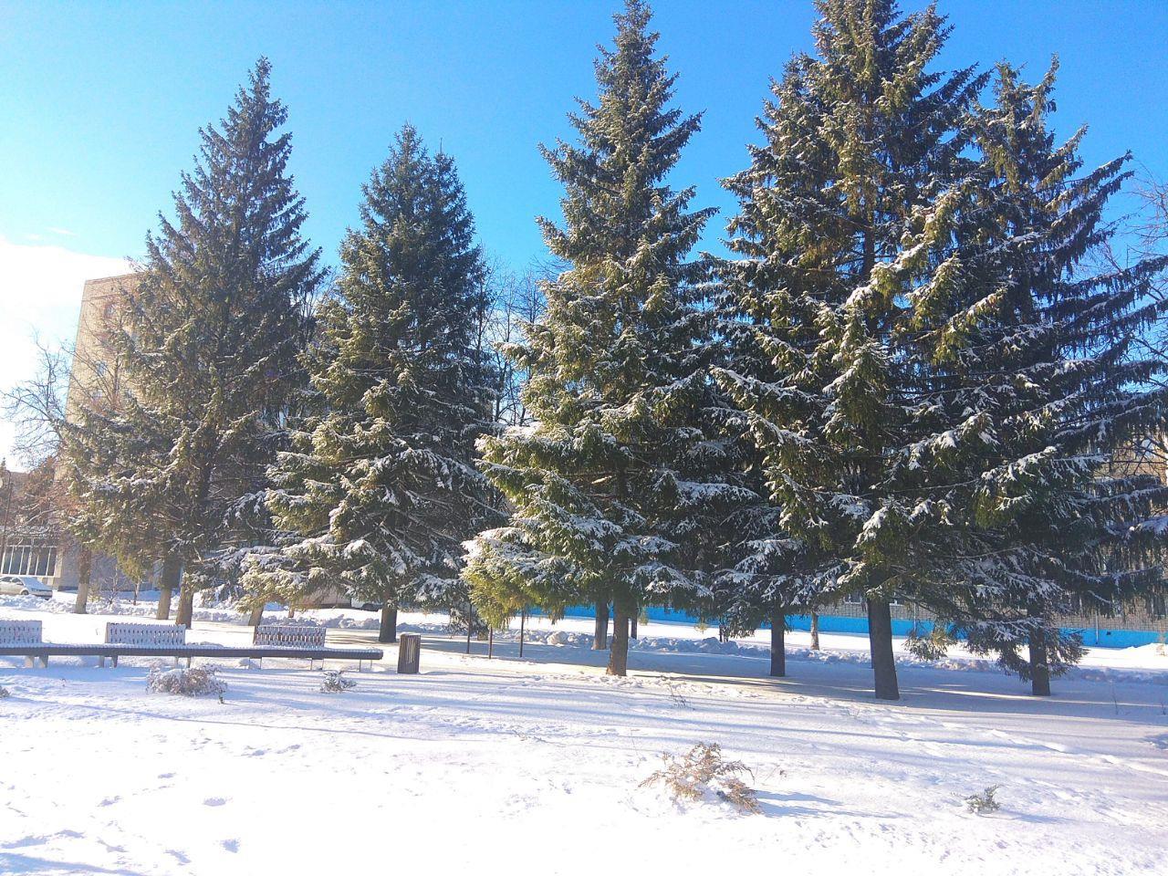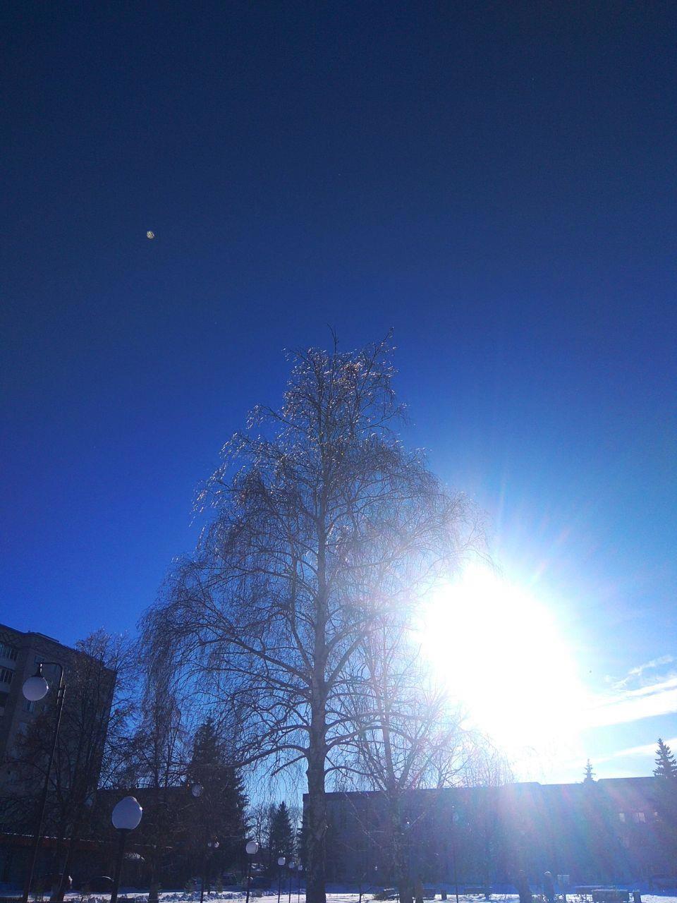 Обратите внимание на деревья -- у них верхушки обледенели на солнце