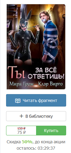 5м номером у нас идёт пара соавторов: Мира Гром и Клэр Вирго с книгой "Ты за все ответишь!". Сейчас на неё действует 50%я скидка.