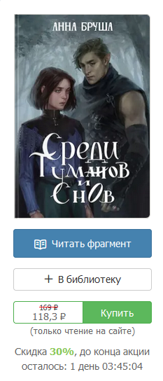 3й автор: Анна Бруша с циклом Королевство туманов. На книги цикла сейчас действует 30% я скидка