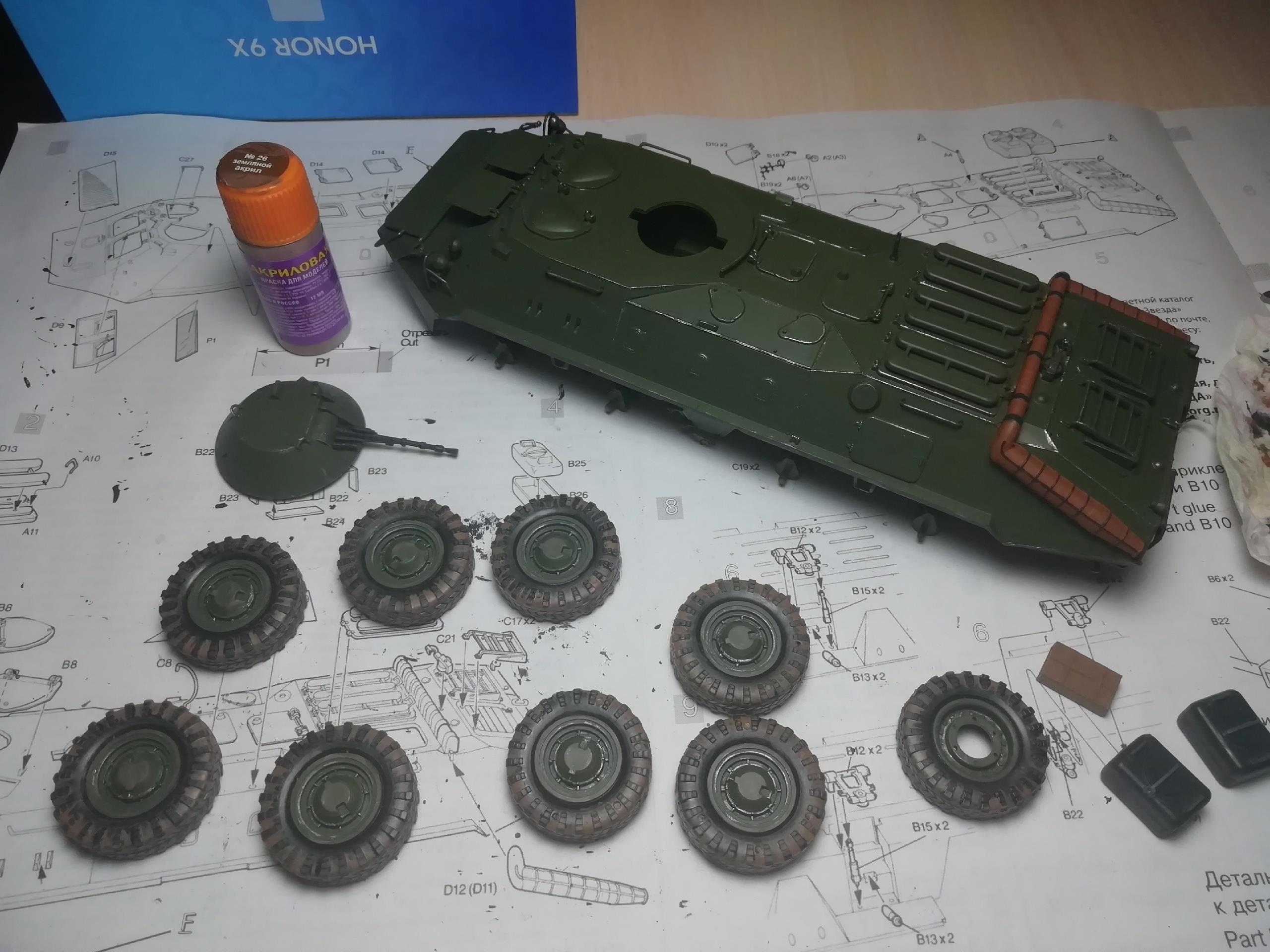 Ну и традиционно, чтобы два раза не вставать - начинаем загаживать "осенний" БТР (собственно, подвеска готова, осталось только собрать колёса и поставить башню и навесное):