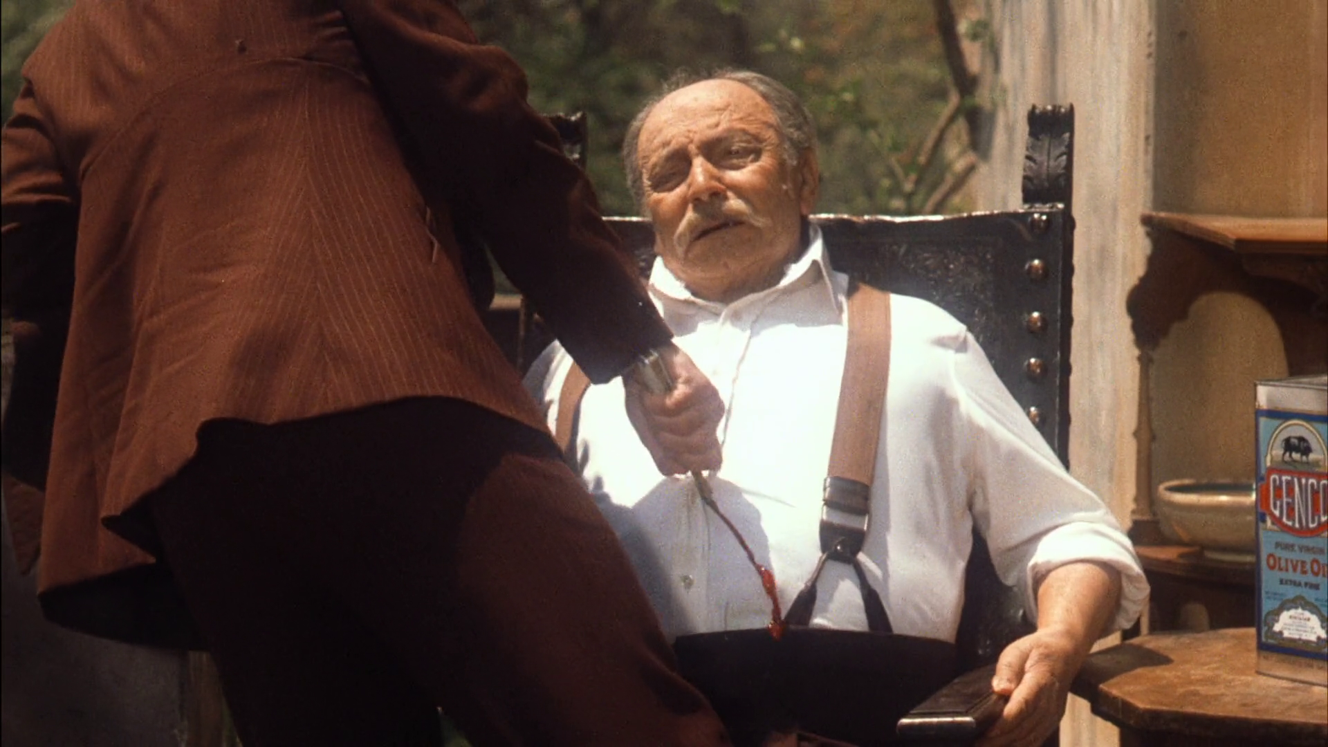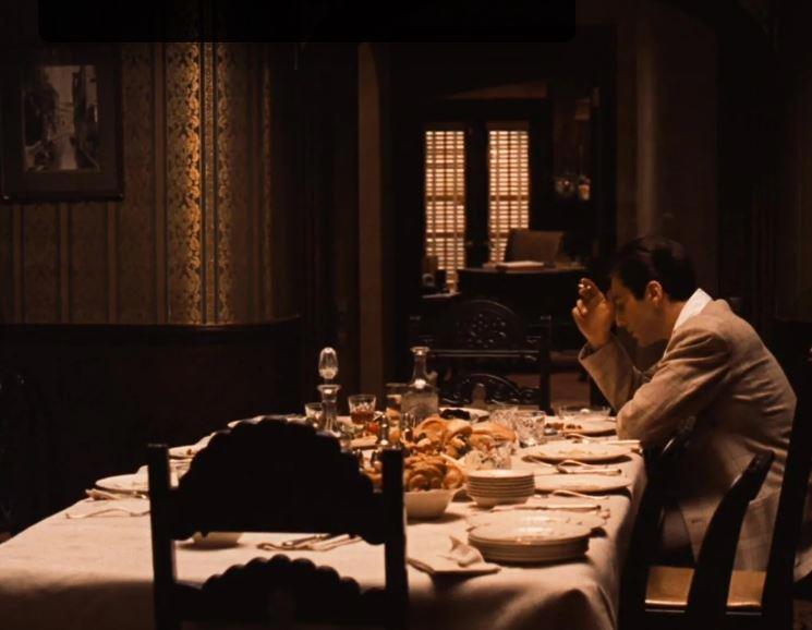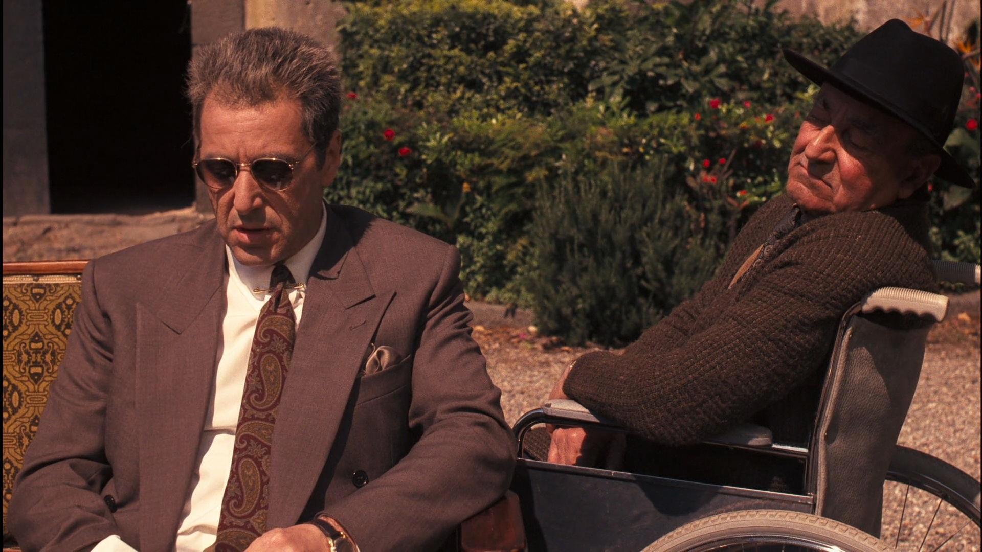 (постаревший Майкл Корлеоне, уже миллиардер и глава всей итальянской мафии в США берет совет у дона Томазино, кадр из третей части саги)