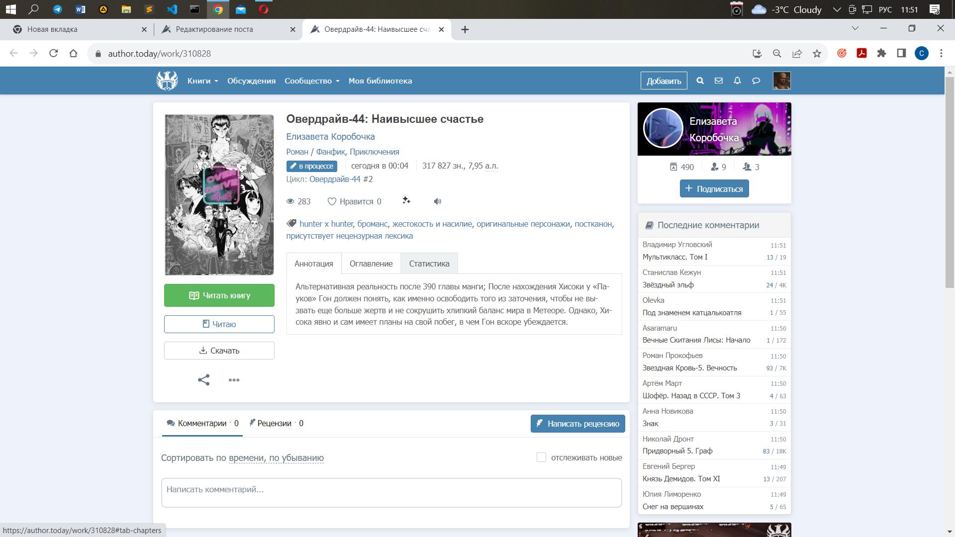 Елизавета пишет в европейской манере, когда куча диалогов, мало описаний, и много болтовни. Герои активно делятся впчатлениями, чот происходит в мире, где есть магия, хацу (хз, что это), и куча других плюшек. В приинципе, нормально. Конечно, в ряде моментов становилось скучно, и я проматывал дальше.