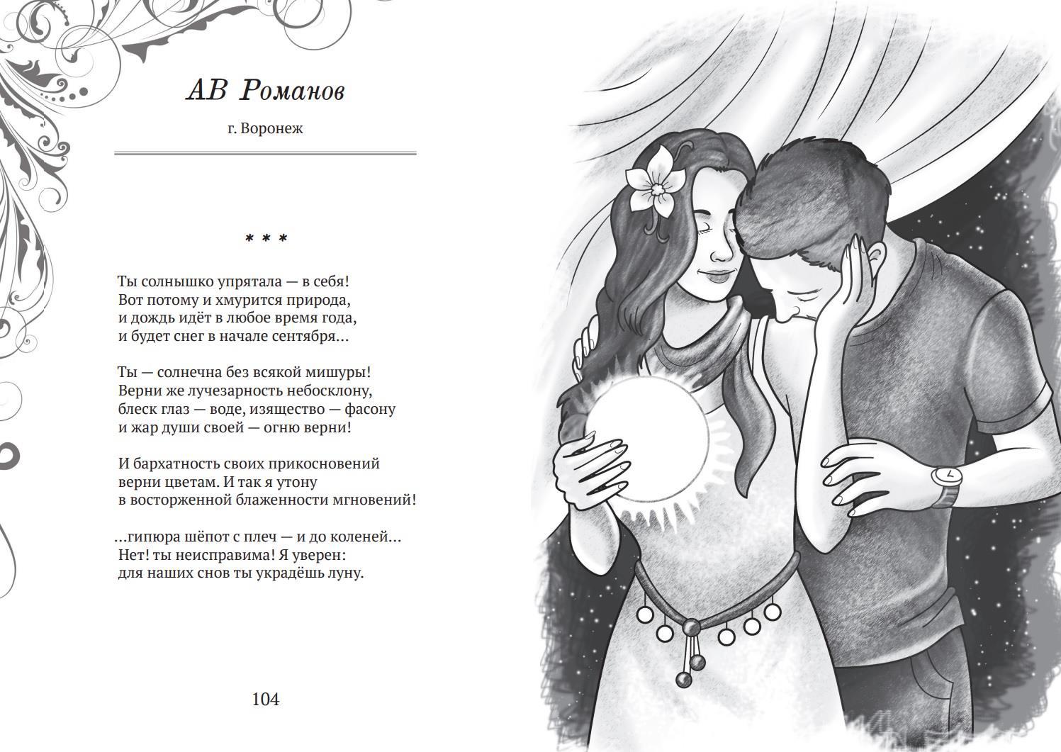 Автор: АВ РомановУ меня радость! Получил сборник "От имени Любви", изданный в Новокузнецке, с моим стихотворением "Ты солнышко упрятала в себя...". Твёрдый переплёт, шикарное оформление. Рисунок мне нарисовали! ЗдОрово!!! Если интересно - видеоролик https://vk.com/id486337422?w=wall486337422_1762 .