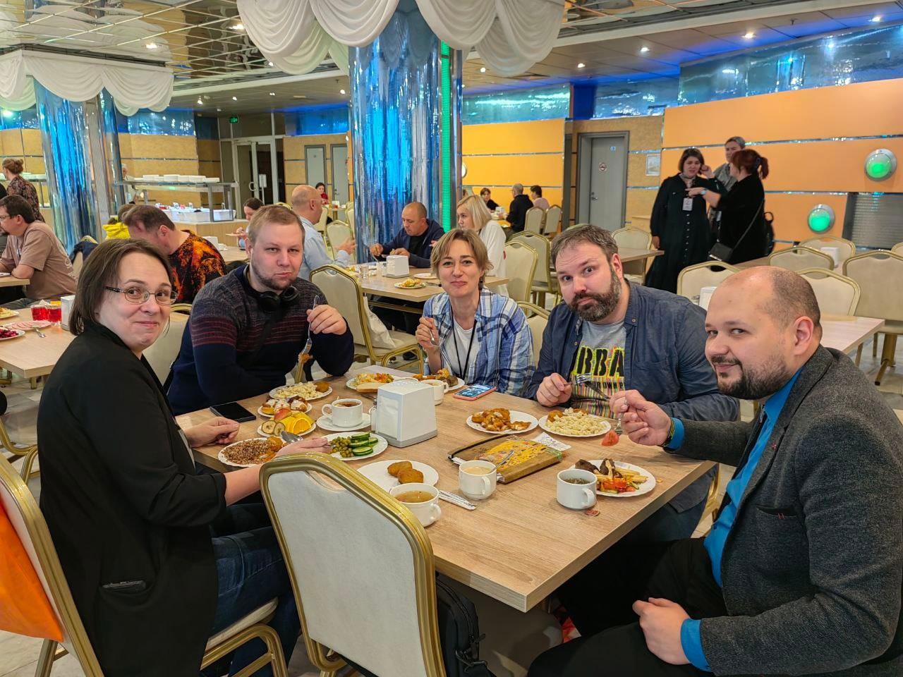 Каждый день после обеда, когда оба разбора завершались, в той же гостинице проходили полезные семинары. Например, крайне симпатичное выступление Марии Семеновой и Анны Гуровой со сценическим шаманизмом, или максимально дельный и очень полезный мастер-класс Алексея Гравицкого о создании логлайна, заявки и кино-синопсиса на фильм или сериал по своей книге. А после кипело свободное общение, которое частенько шло до 2-3 ночи.