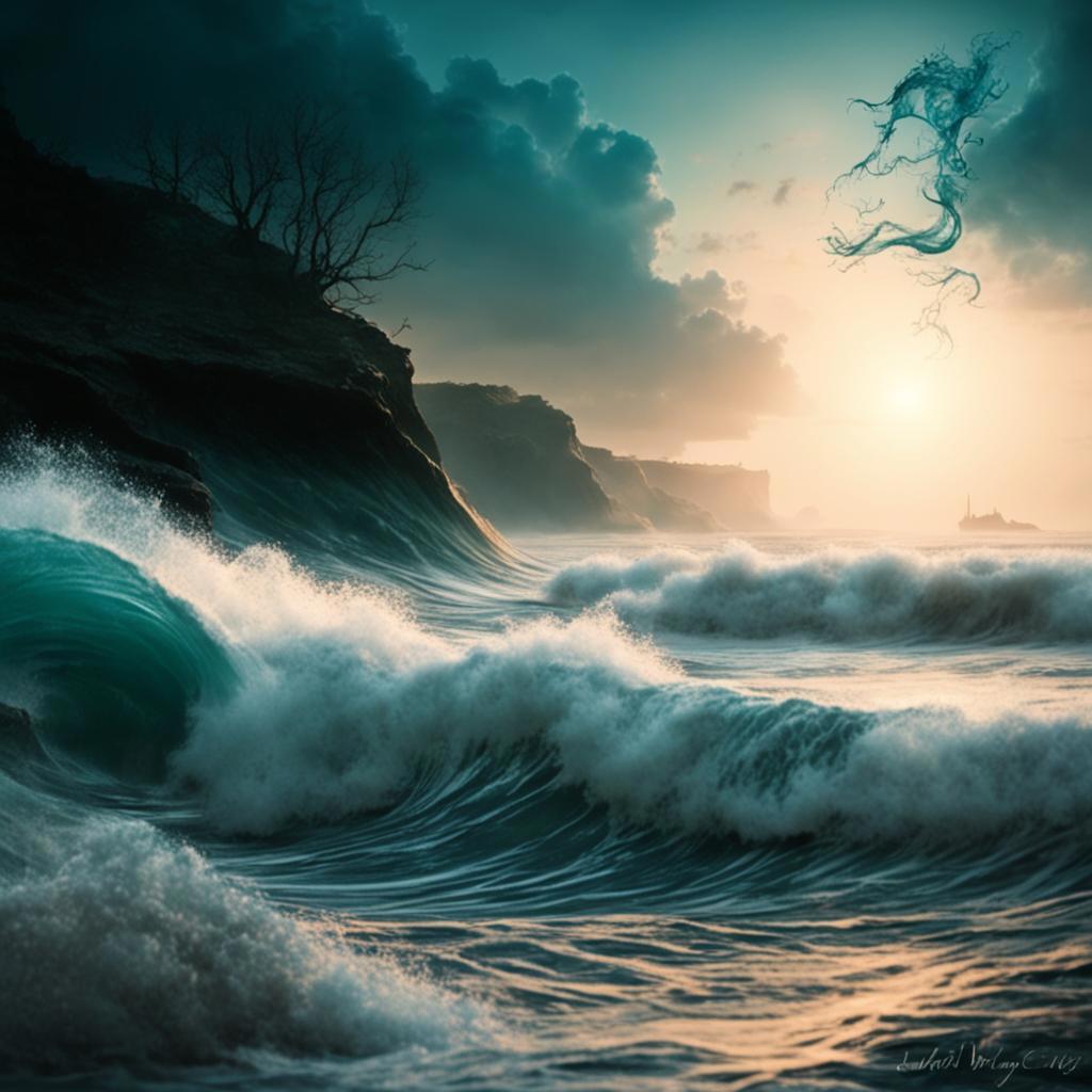 "Дело было вечером, делать было нечего". Воскресенье. И решила я проверить, насколько нейросеть сможет отобразить стихотворение. Недавно "Кандинский" обновился до версии 3.0. Я выбрала своё стихотворение "Магия моря". Оно длинное, а в строке загрузки текста ограничение. поэтому кидала четверостишиями. Стиль изображения нейросеть выбирала сама. Я не вмешивалась в эту настройку. Получилось забавно.