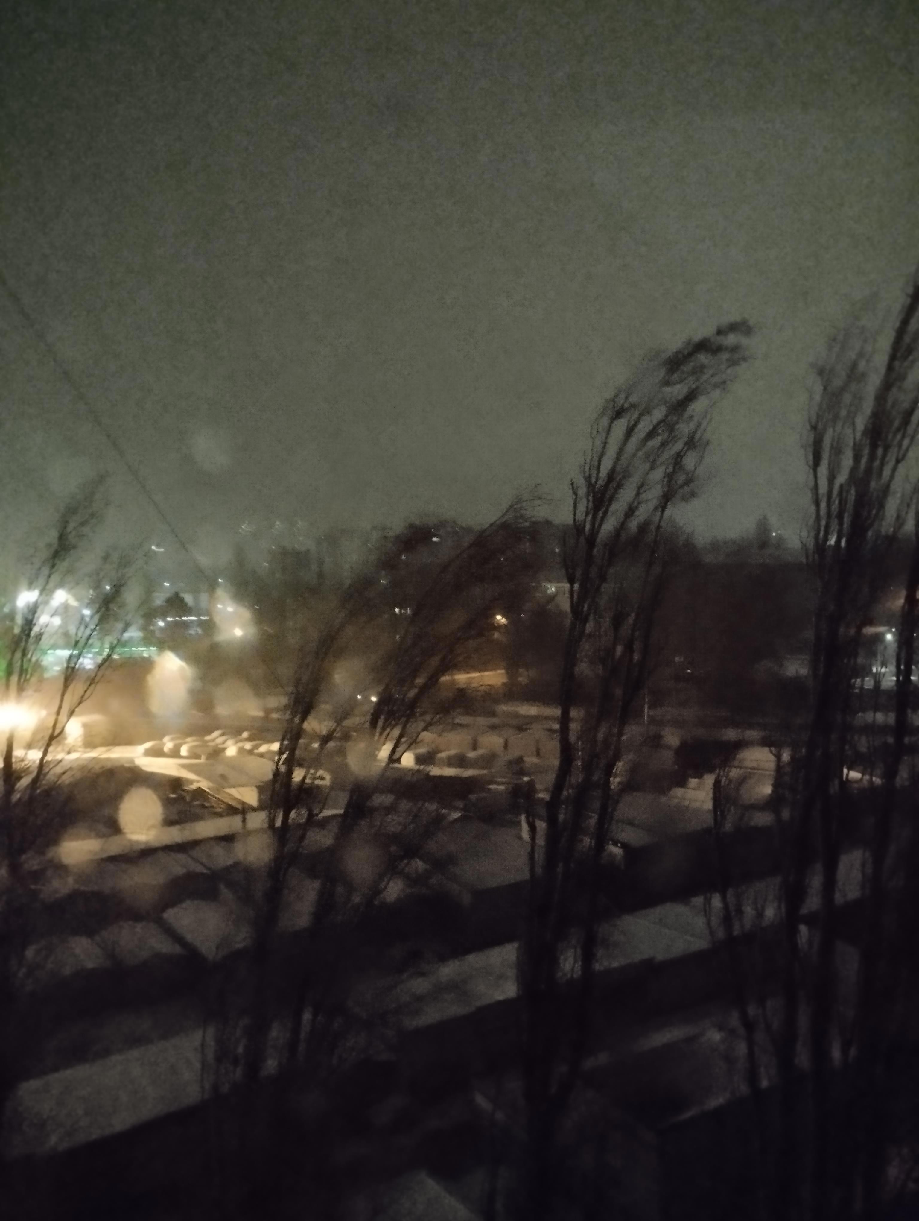 Фото сделано с лоджии восьмого этажа. Тополя качаются - аки камыш над рекой.