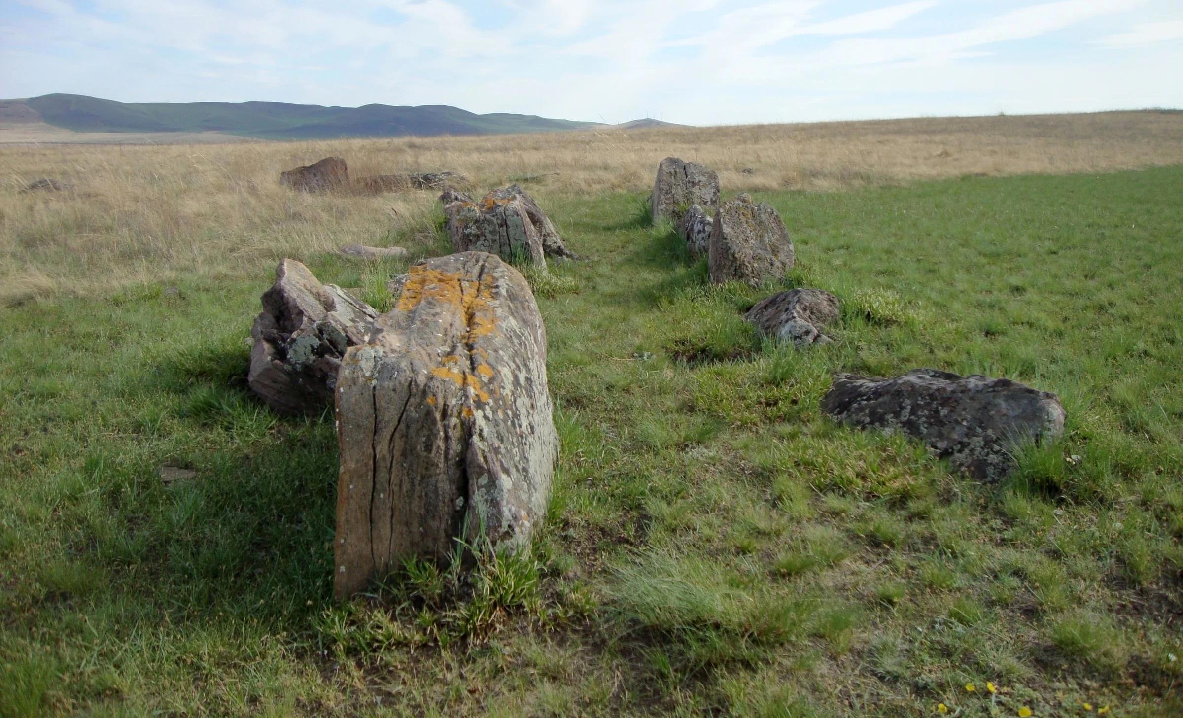 Тут стоящие торчком камни больше напоминают оградку. Совсем недалеко есть могильник – там тоже камни так же примерно установлены, хотя явно крупнее размером. Вот такой: