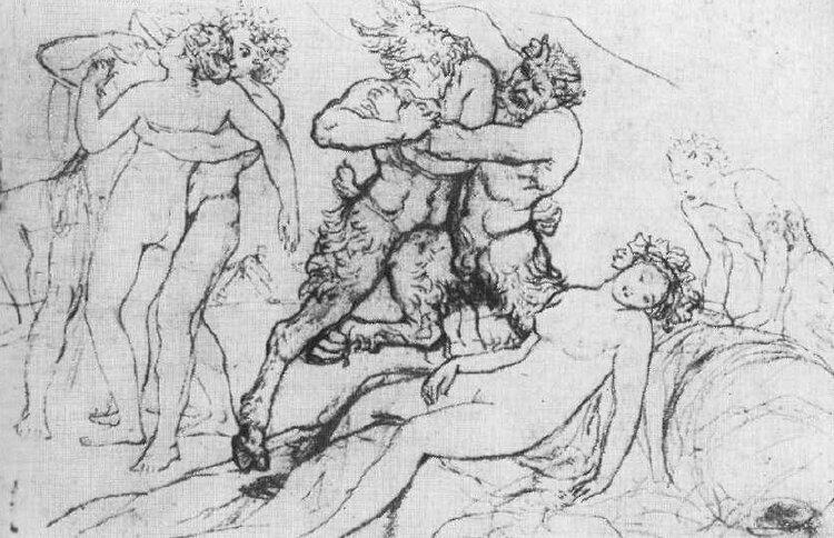 Это единственный сохранившийся эскиз к "Вакханалии". На счастье - вполне приличный.