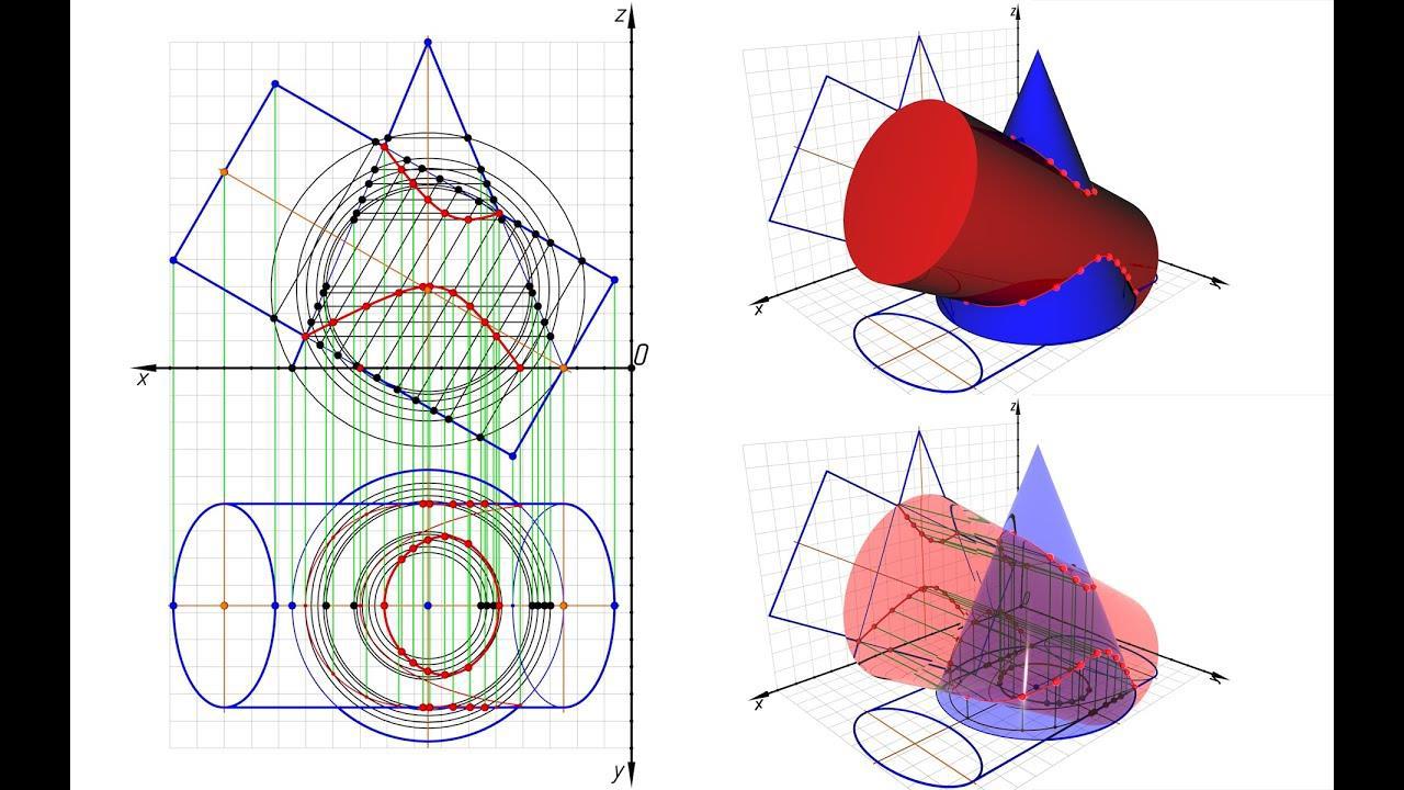 Но математика всегда будет выше наших представлений о ней. Ей чужды человеческие предрассудки, барьеры непонимания. Она просто смеётся над нами. Не зло. Она умиляется нам, как старшая сестра маленькому братику. В определённый момент я стал замечать щели в заборах, которые держали меня в плену эвклидовости. Разные учителя старательно замазывали пошлость криволинейных поверхностей, маскируя эротическую кривизну пуританскими нарядами из ломанных прямых отрезков. Признаться, я и сам пытался маскировать плавные изгибы множеством острых и тупвх углов, но чем больше я рисовал прямых отрезков, тем больше мне их требовалось. Доходило буквально до абсурда, когжа я считал вручную сотни точек, что должны были описать линию пересечения двых цилиндров построенных в перспективе.