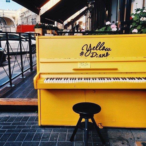 - Жёлтое пианино. Пианино, которое возят по городу и устанавливают в разных местах, ну что бы любой желающий подошёл, поиграл, почувствовал себя музыкантом … или еще кем-то))