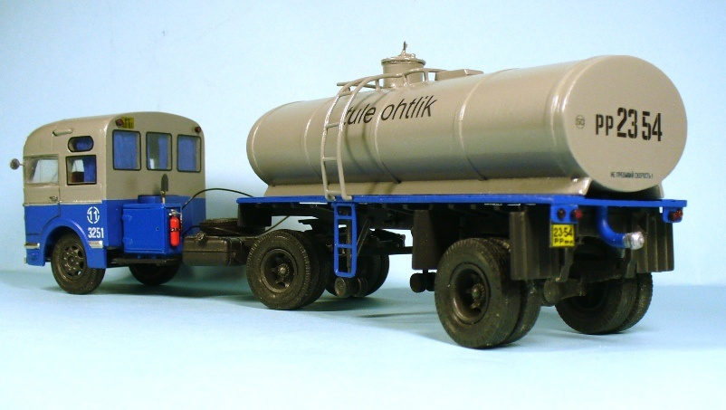 Самопальный седельный тягач с полуприцепом-бензовозом, собранный в 1950-е годы в Эстонии.