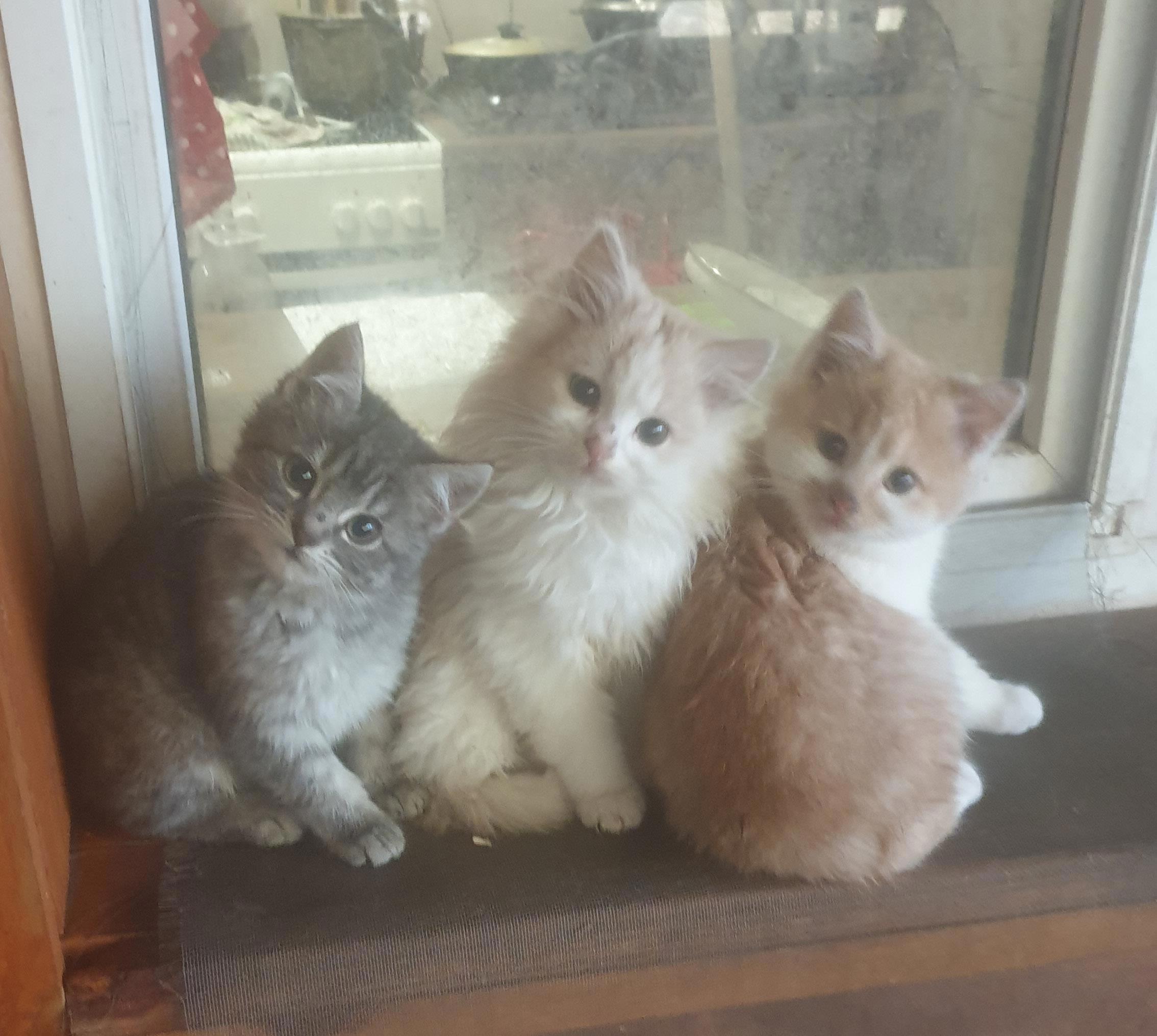 Фотал котят на предмет " отдам в хорошие руки " и первое же фото получилось мемасным. Только теряюсь, какую же точно эмоцию выражают мордахи этих шерстяных существ