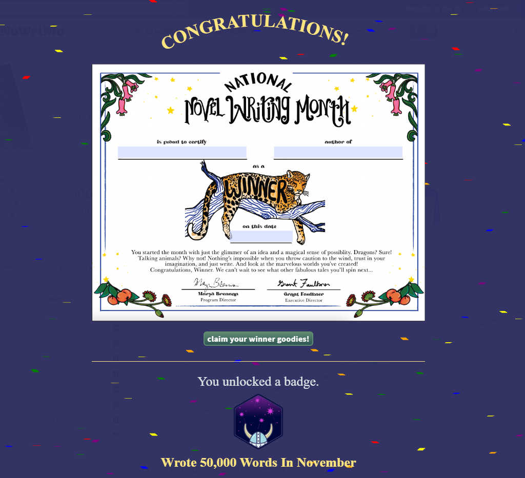 Автор: Лие НальНу что, я зафиналила. За сегодня написано 4 713 слов, а всего за марафон – 50 020 слов.