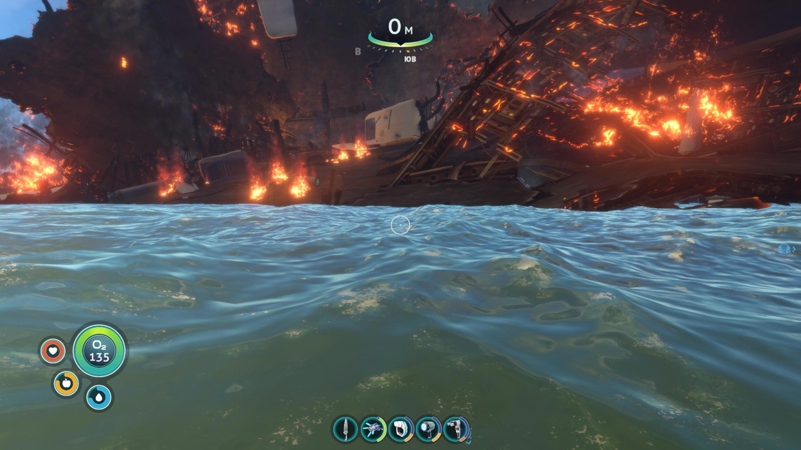 Нам сильно везёт – космолёт падает на мелководье, а спасательная капсула протагониста приводняется вообще почти на самую верхушку местного рифа.