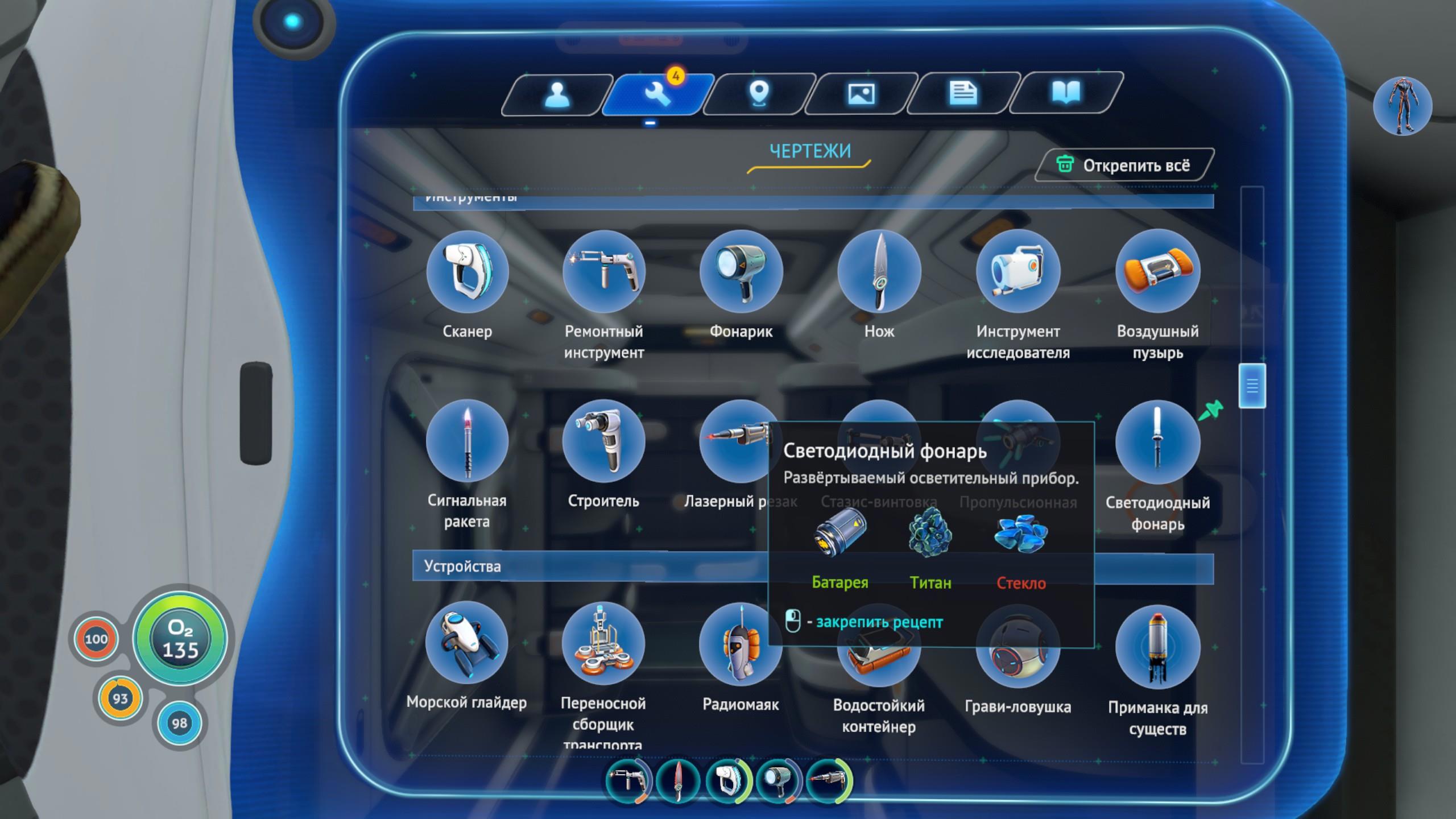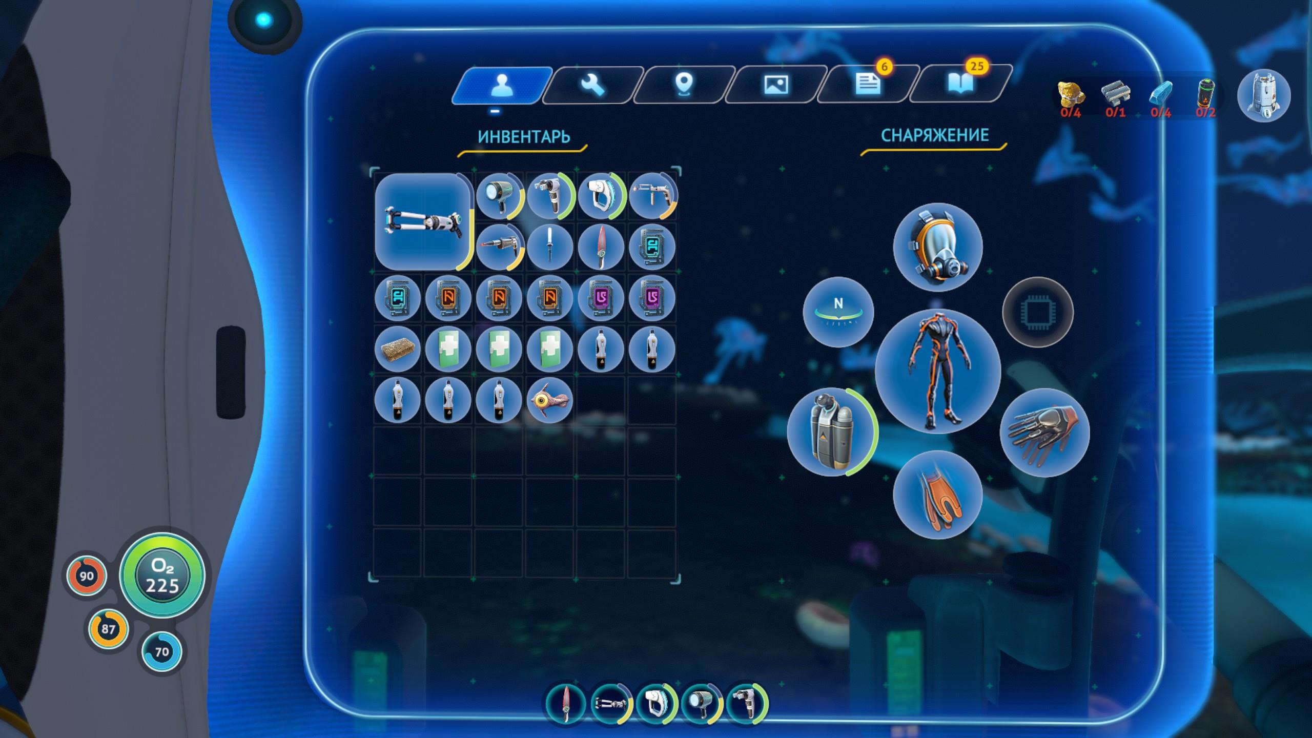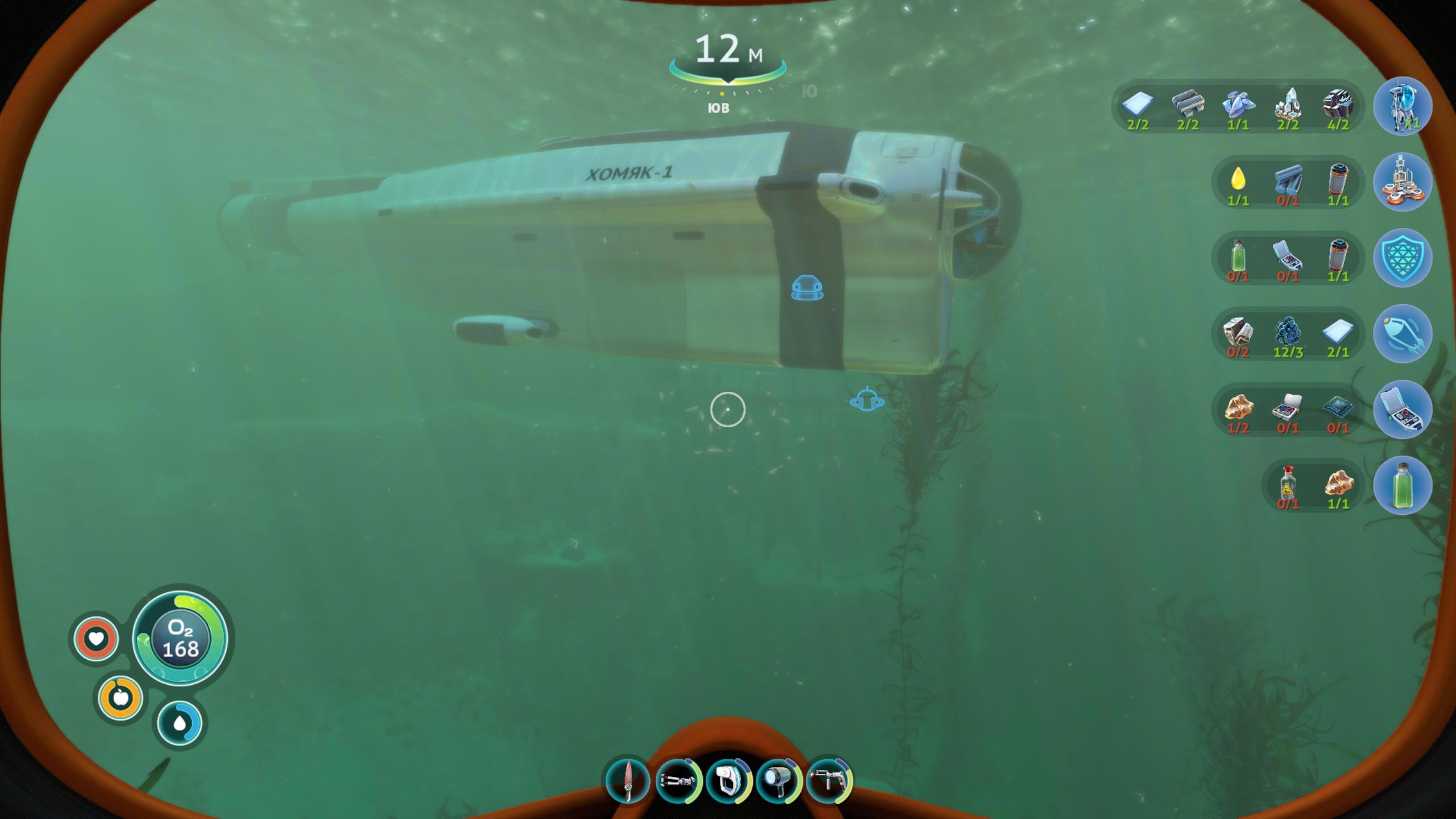 Итак, мы собираем разные ресурсы, крафтим из них полезные устройства, которые позволяют дольше находиться под водой, забираться на большую глубину, быстрее перемещаться в пространстве и т.д.