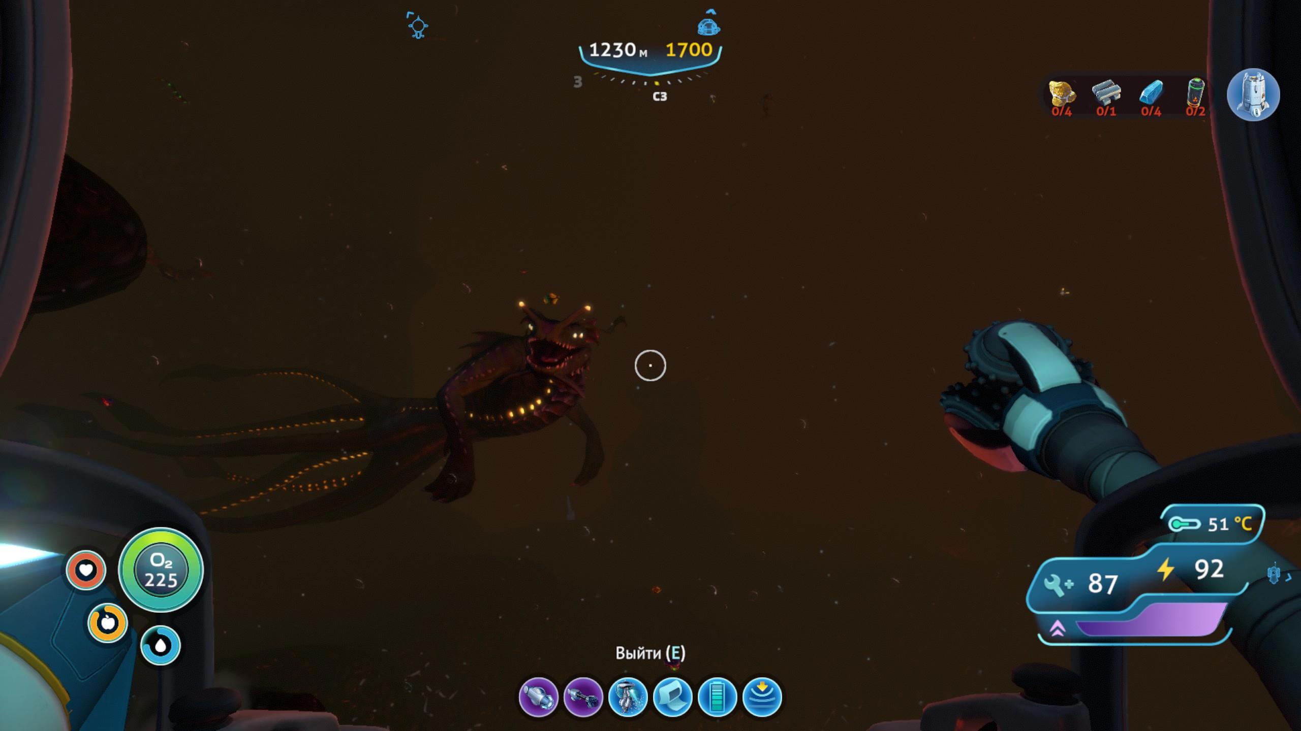 Всё это нужно, чтобы собирать новые ресурсы, крафтить новые полезные устройства, и забираться ещё глубже, плавать ещё дальше, ну и всё в том же духе.