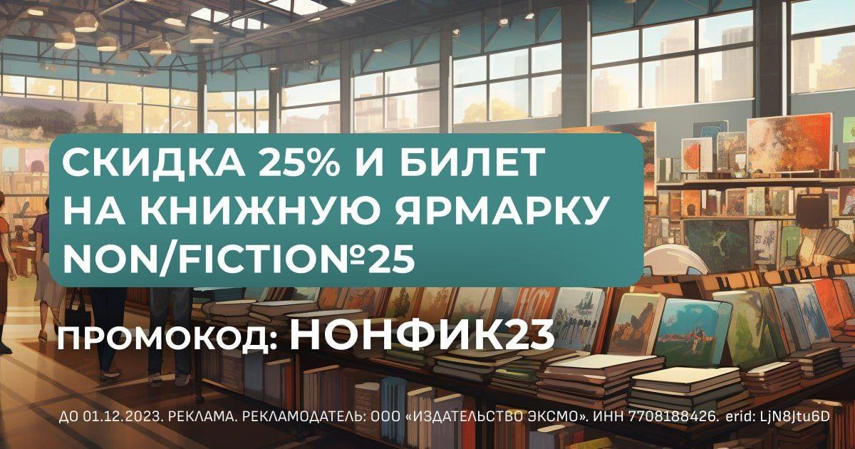 Делаете любую покупку на сайте eksmo.ru, применив промокод НОНФИК23 — получаете скидку 25% + билет. Отличный план: купить одну из моих книг или тетрадь по Шолоху — и на ярмарке подписать)))